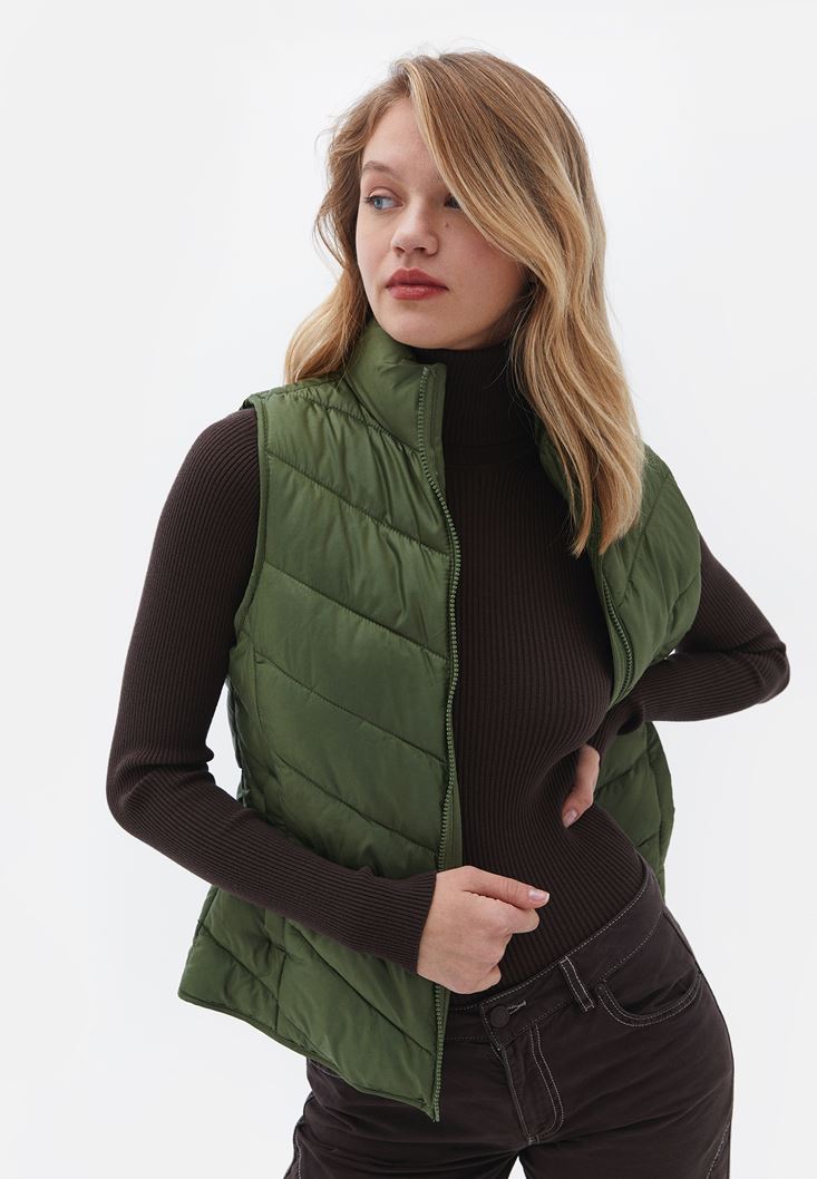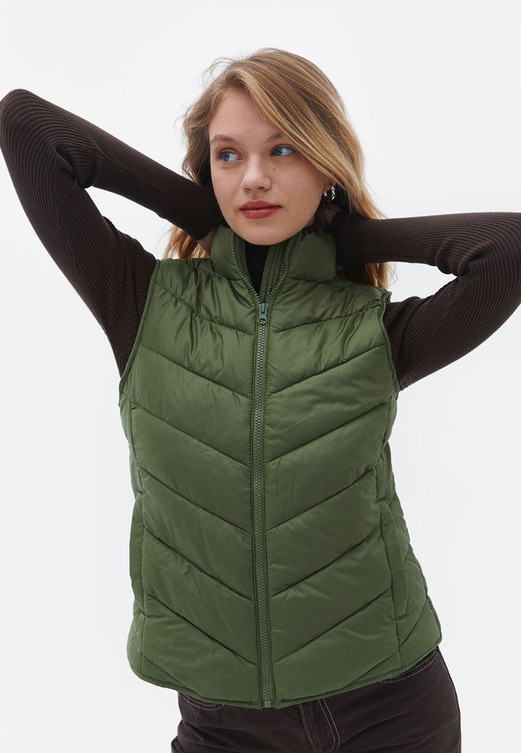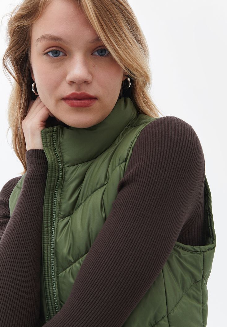 • Bayan Yeşil Kapitoneli Yelek