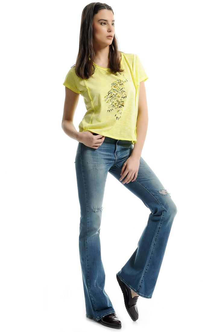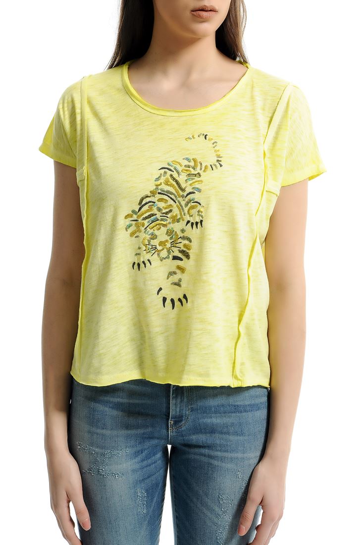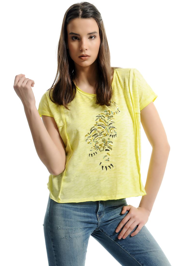 Parlak kaplan baskılı, pamuklu, bol tişört.