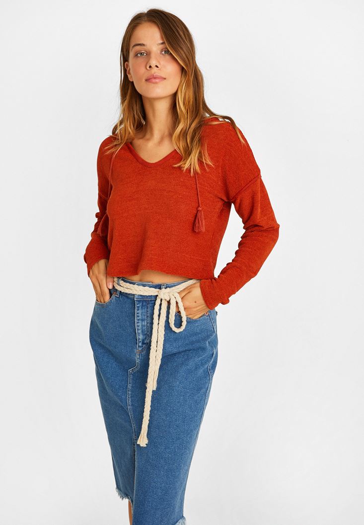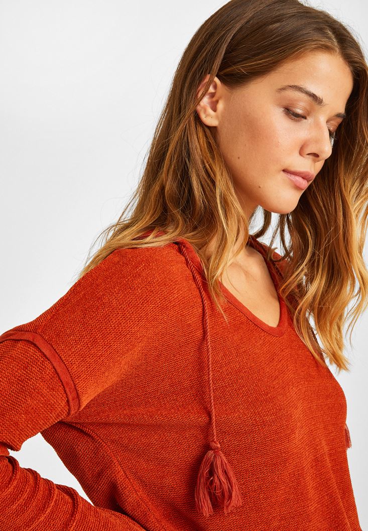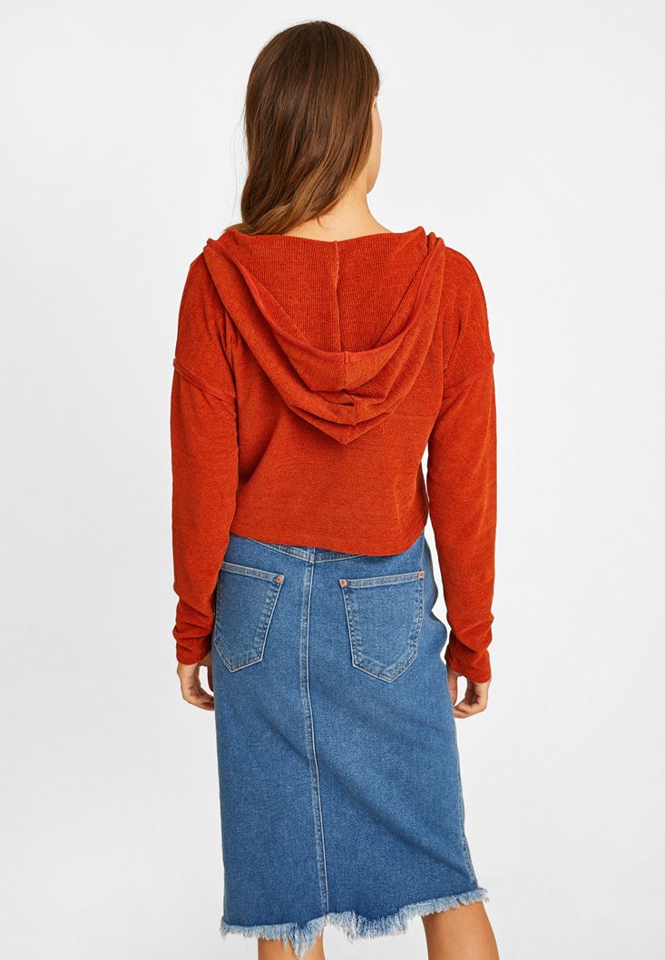 • Bayan Kiremit Kapüşon Detaylı Kazak