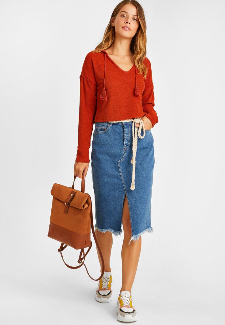 Kapüşon Detaylı Kazak modeli örgü ve yumuşak dokusuyla rahat kullanım imkanı veriyor. Kapüşonlu olarak tasarlanmış kazak modeli ile günlük kombinlerinize salaş detaylar katabilirsiniz. Yakası V şeklinde olan kadın kazak modeli, kapüşon iplerinin ucunda bulunan püskül detayı ile dikkatleri üzerine çekiyor . Düşük omuzlu kazak modeli, kol kısmının başlangıcında bulunan belirgin dikiş detayları sayesinde tüm dikkatleri üzerine çekiyor. Oxxo kot pantolon veya kadife pantolon modelleri ile kış mevsimine sımsıcak bir kombin eşliğinde dahil olabilirsiniz. Bu modeli hem stil sahibi olan bir tarz yaratmayı hem de rahatlığı yakalayabilmeniz için bağcıklı bot modelleri ile kullanarak uyum yakalayabilirsiniz. Oxxo'nun özgür ruhlu ve genç tasarımlarından biri olan kapüşonlu kazak modelini yeni sezonda tükenmeden hemen alın!