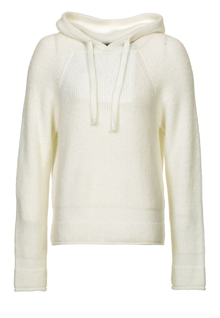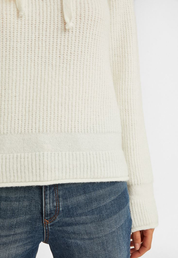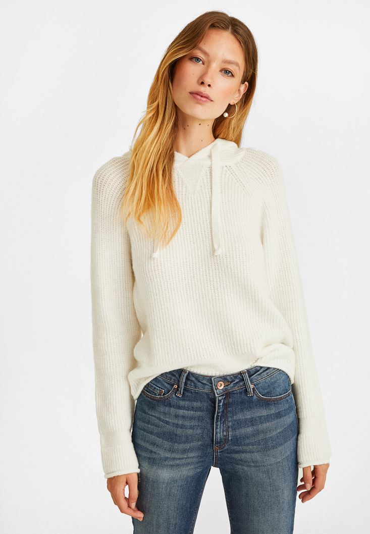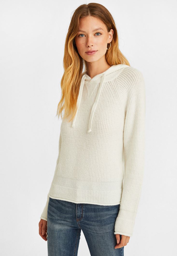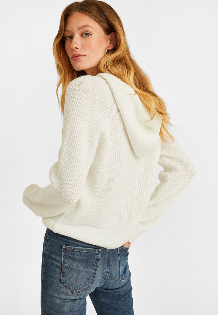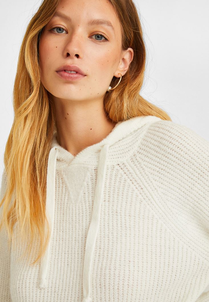 • Bayan Krem Kapüşon Detaylı Triko Kazak