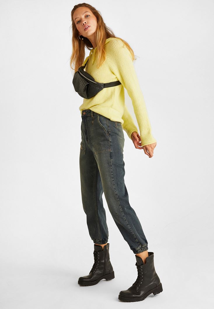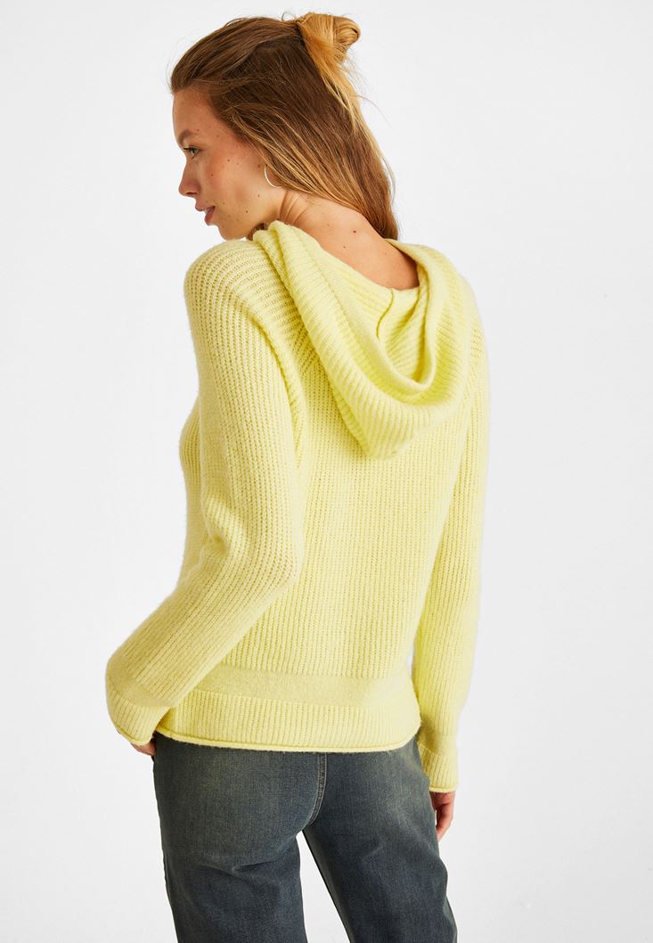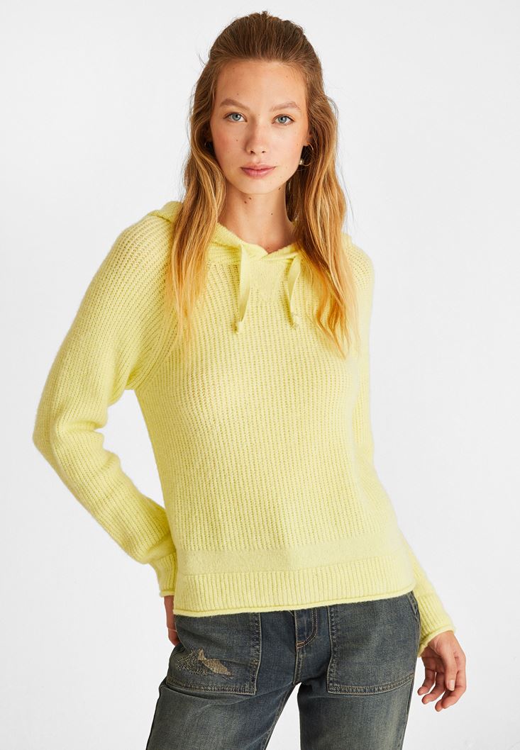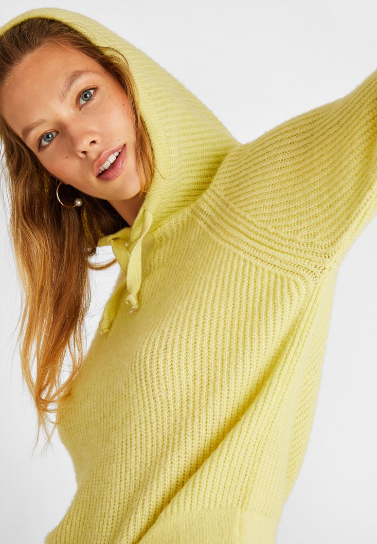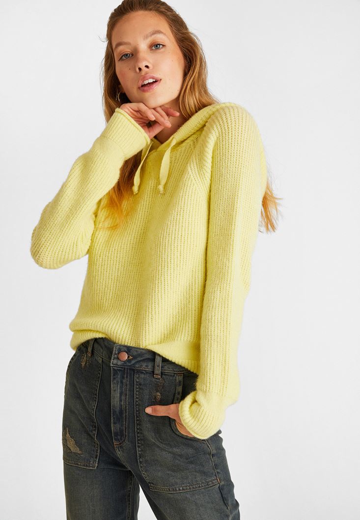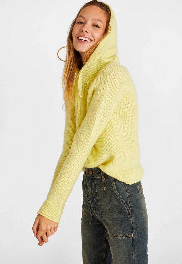 Sarı Kapüşon Detaylı Triko Kazak