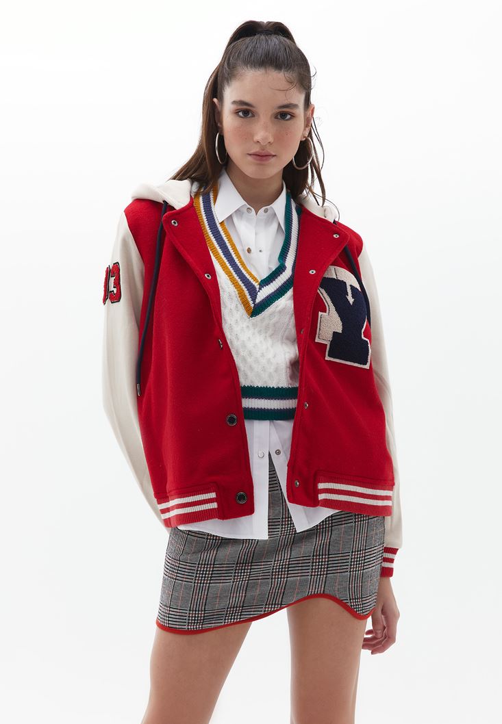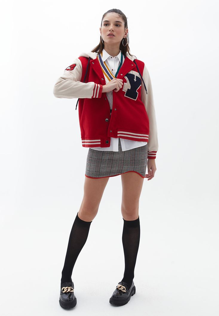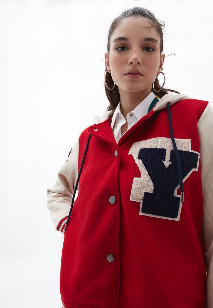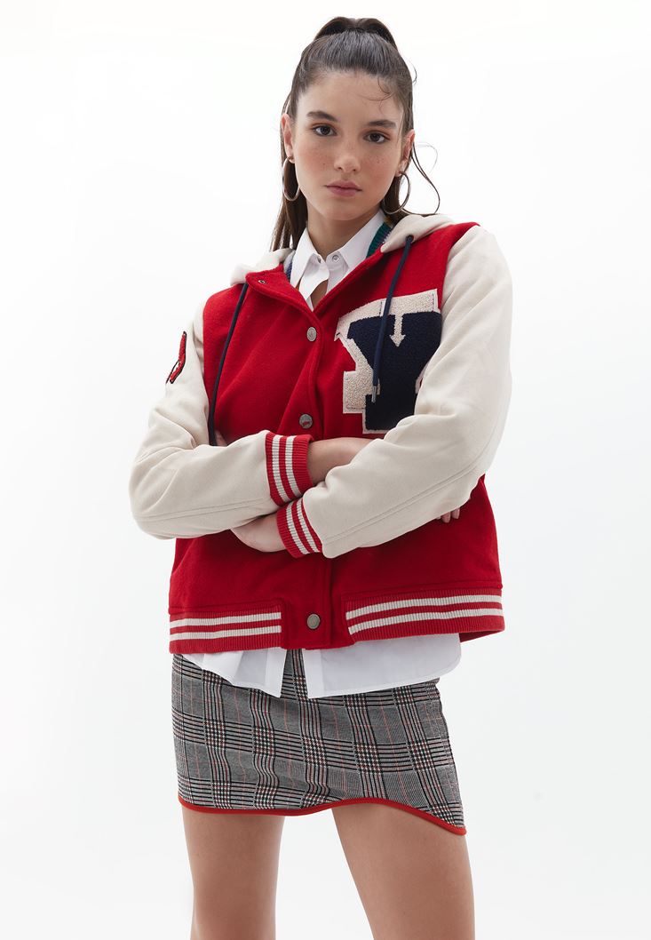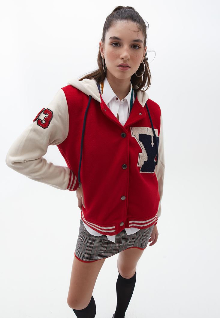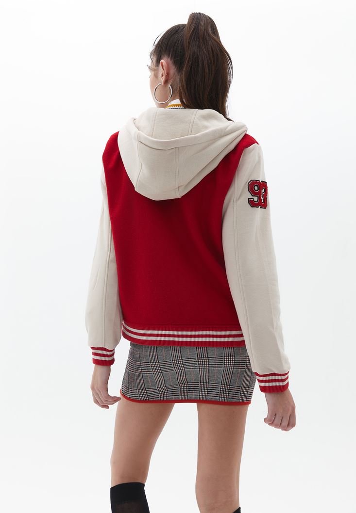 • Bayan Kırmızı Kapüşonlu Bomber Ceket