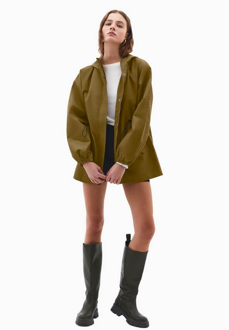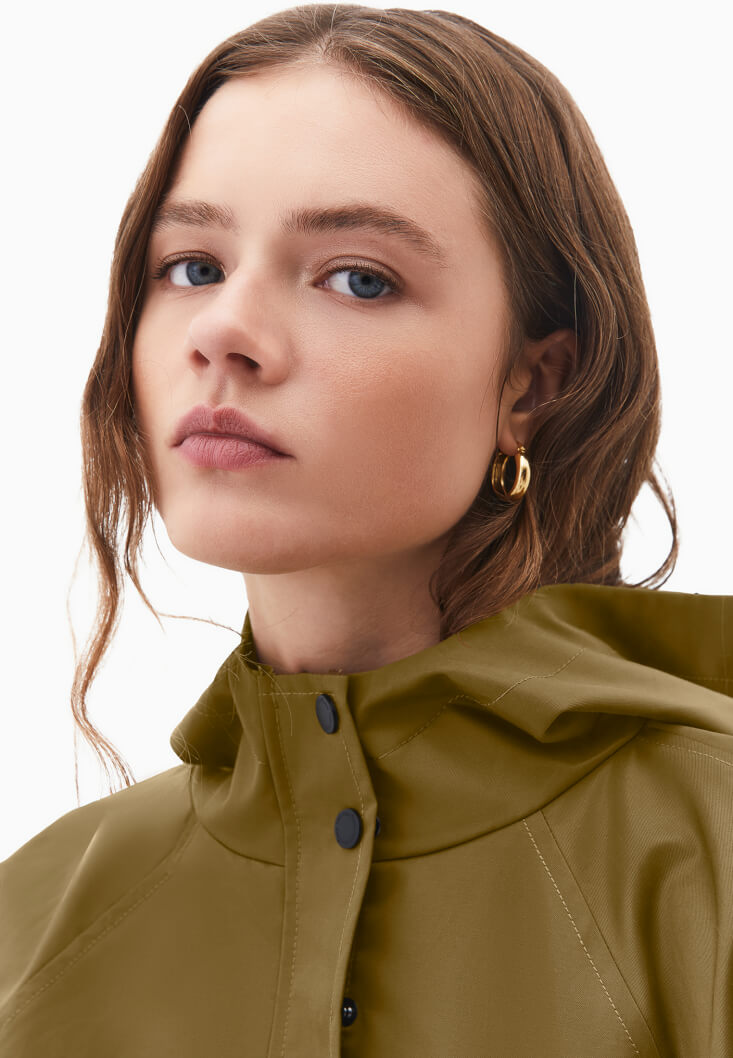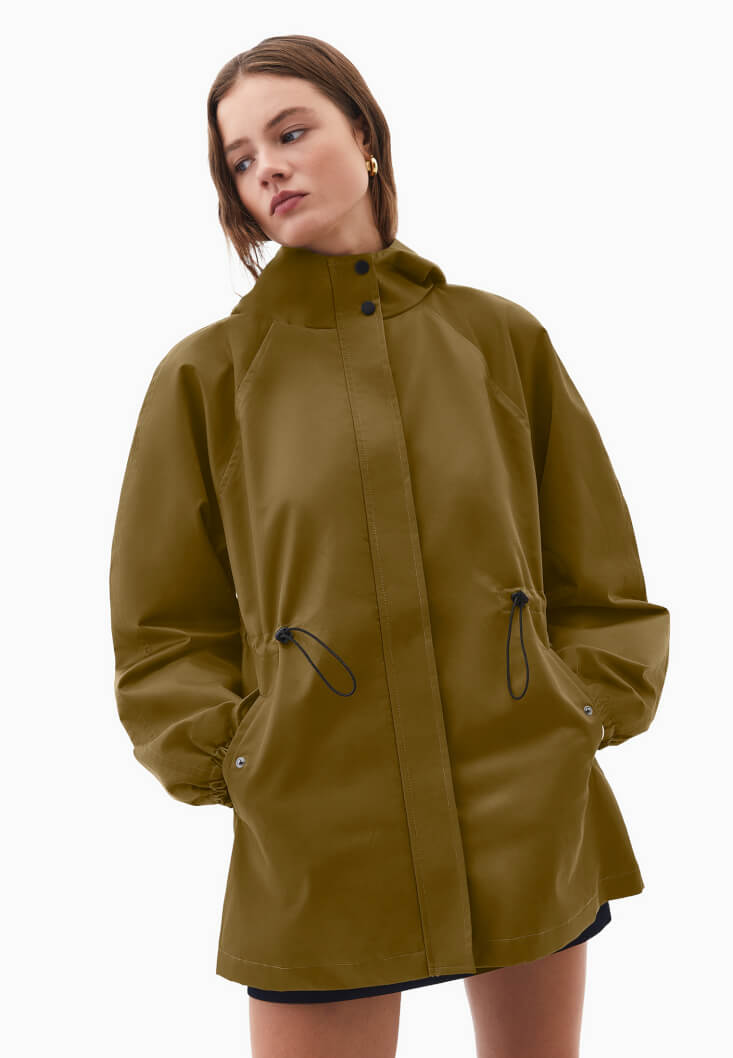 • Bayan Kahverengi Kapüşonlu Cep Detaylı Yağmurluk