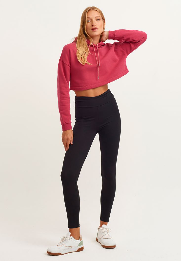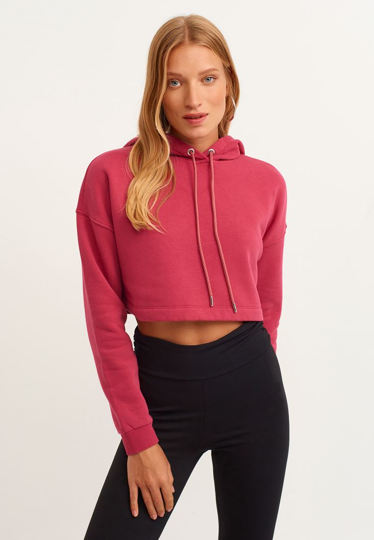 Pembe Kapüşonlu Crop Sweatshirt
