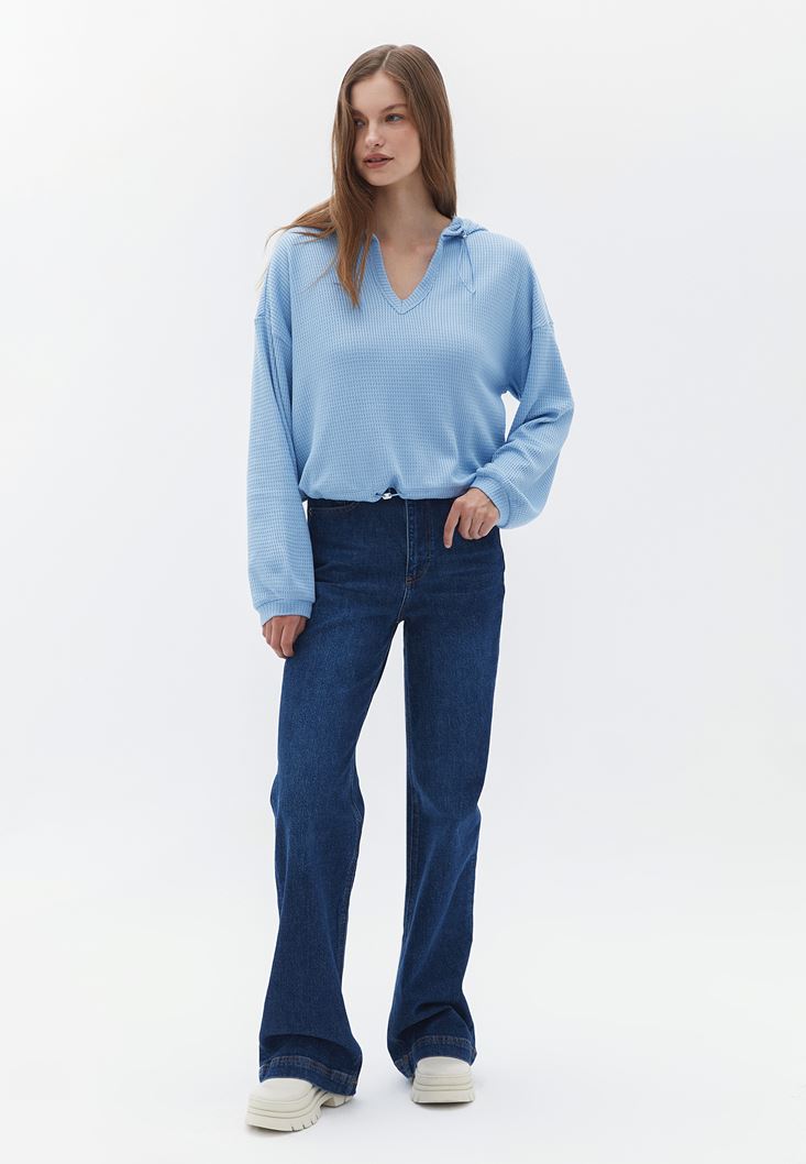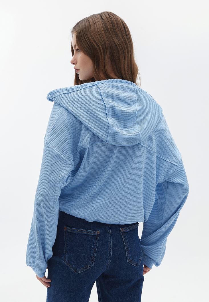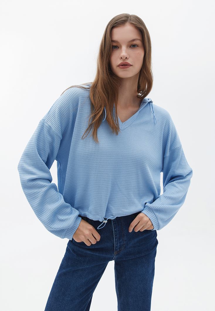 • Bayan Mavi Kapüşonlu Crop Sweatshirt
