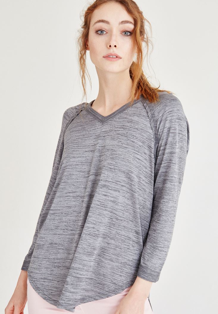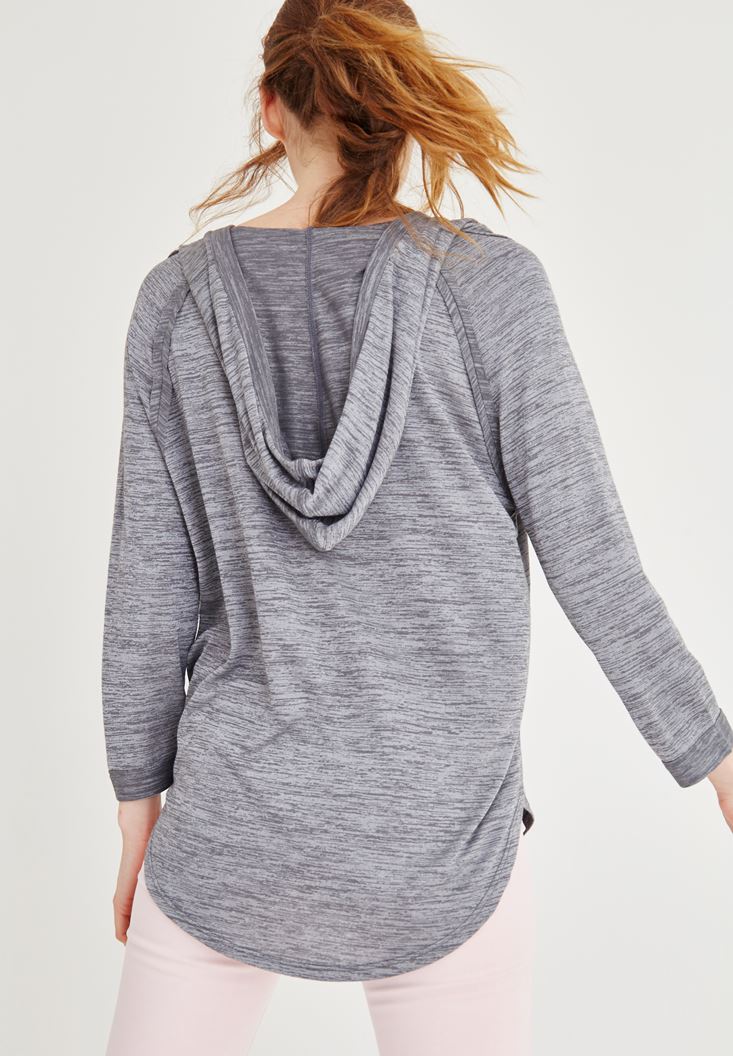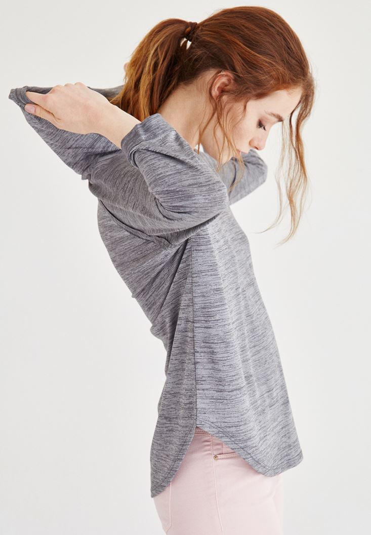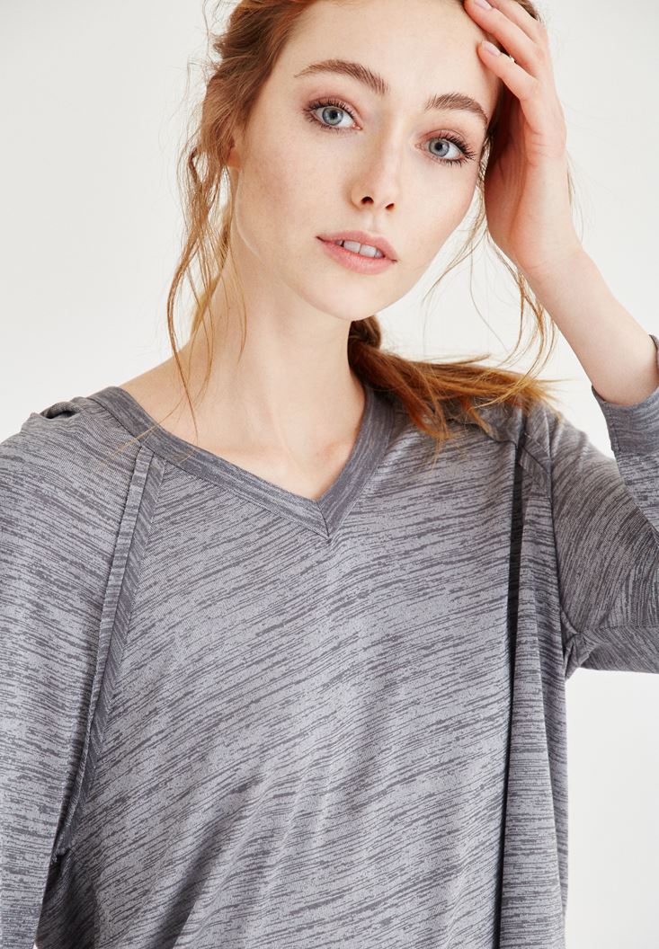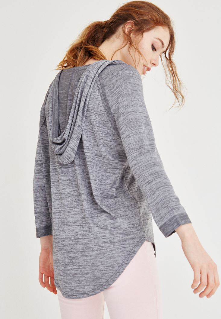 • Bayan Gri Kapüşonlu Dökümlü Tişört