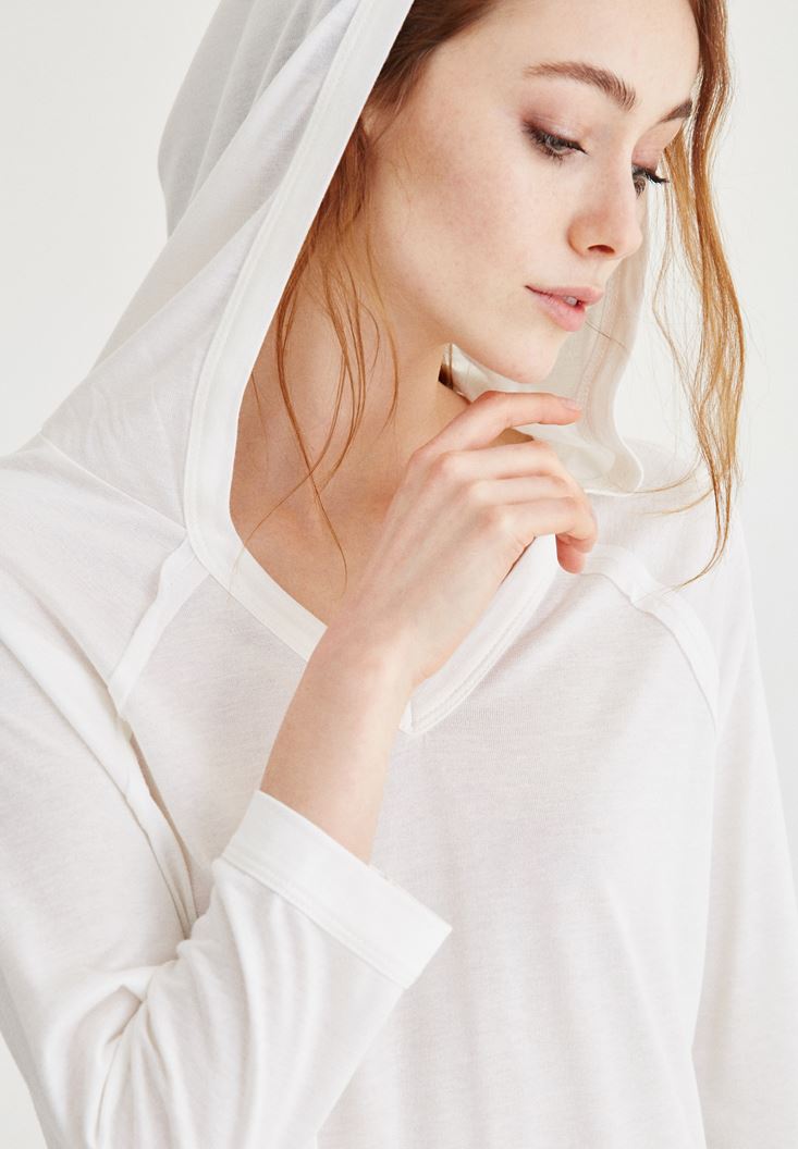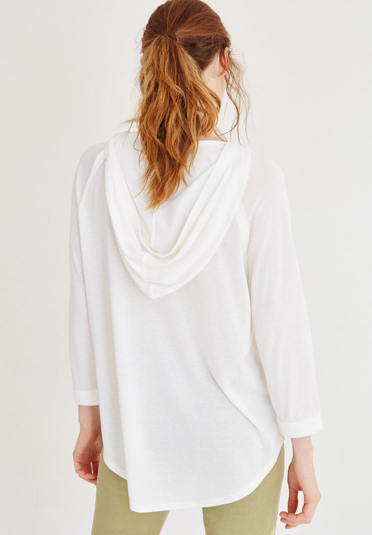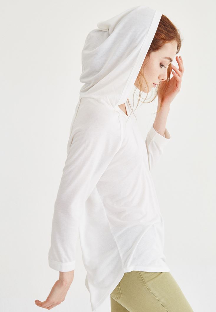 • Bayan Krem Kapüşonlu Dökümlü Tişört