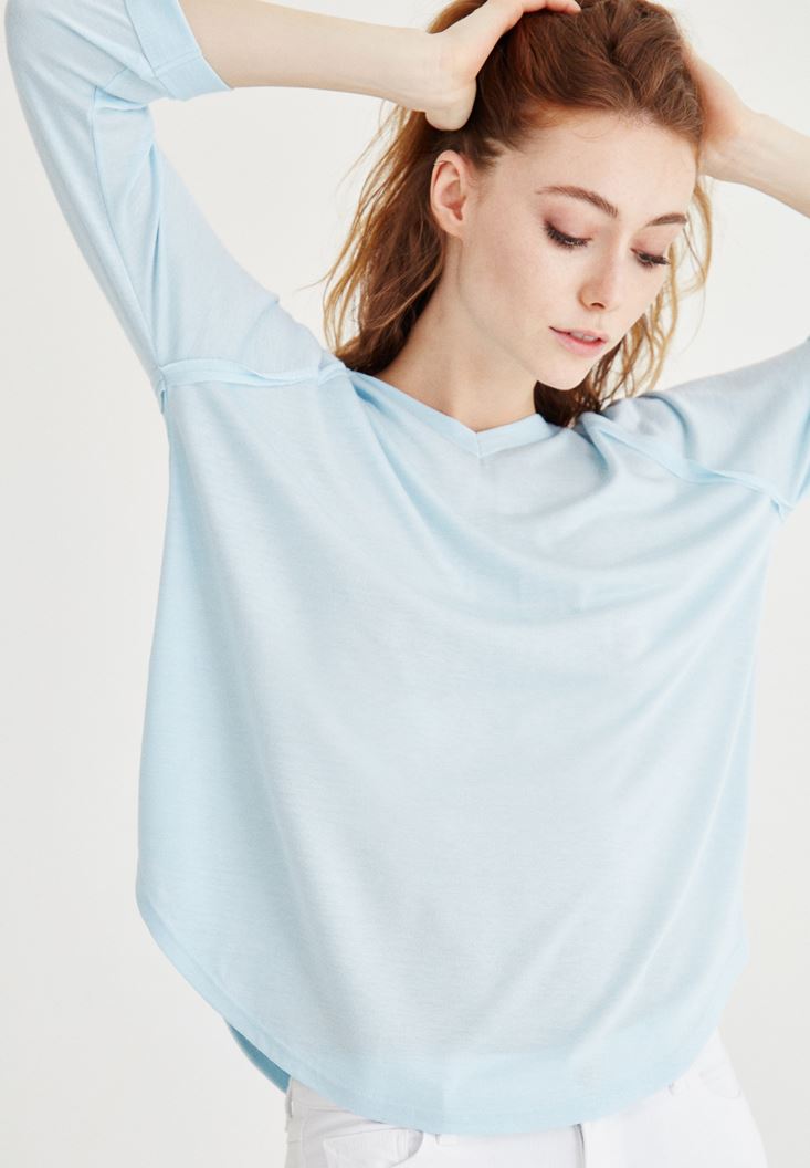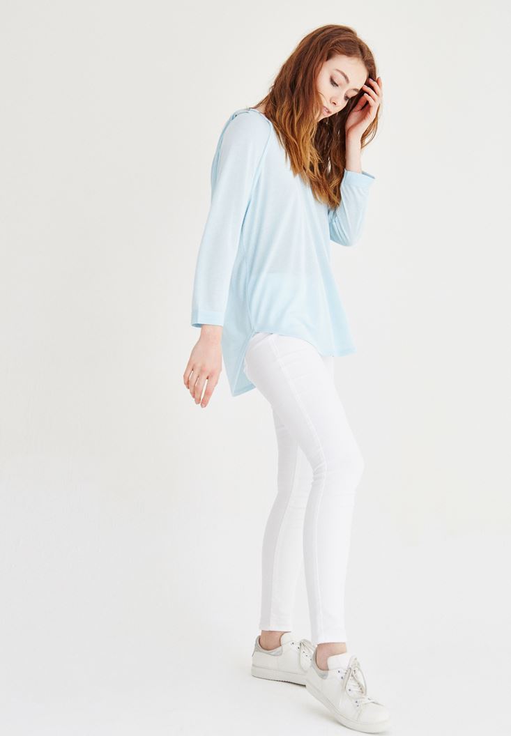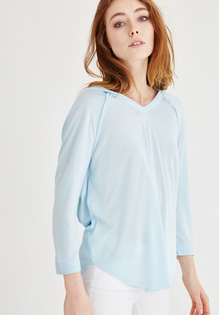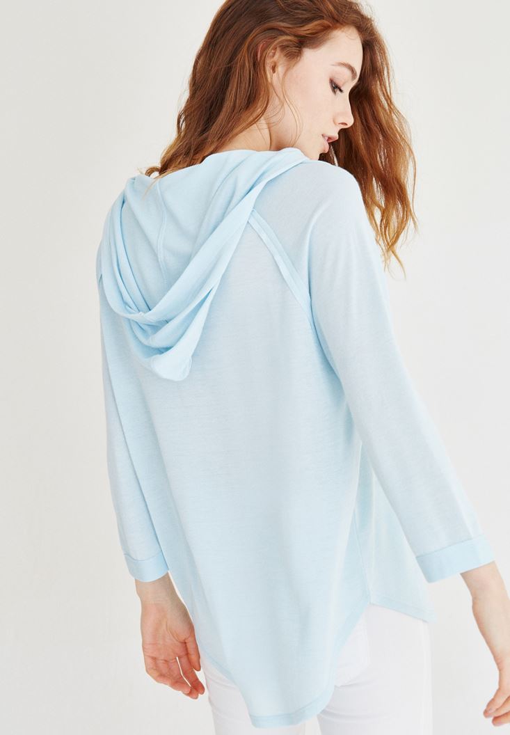 • Bayan Mavi Kapüşonlu Dökümlü Tişört