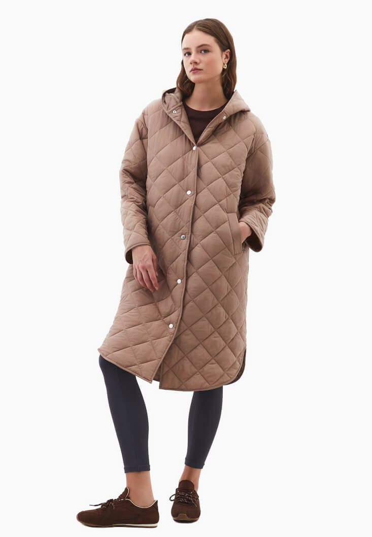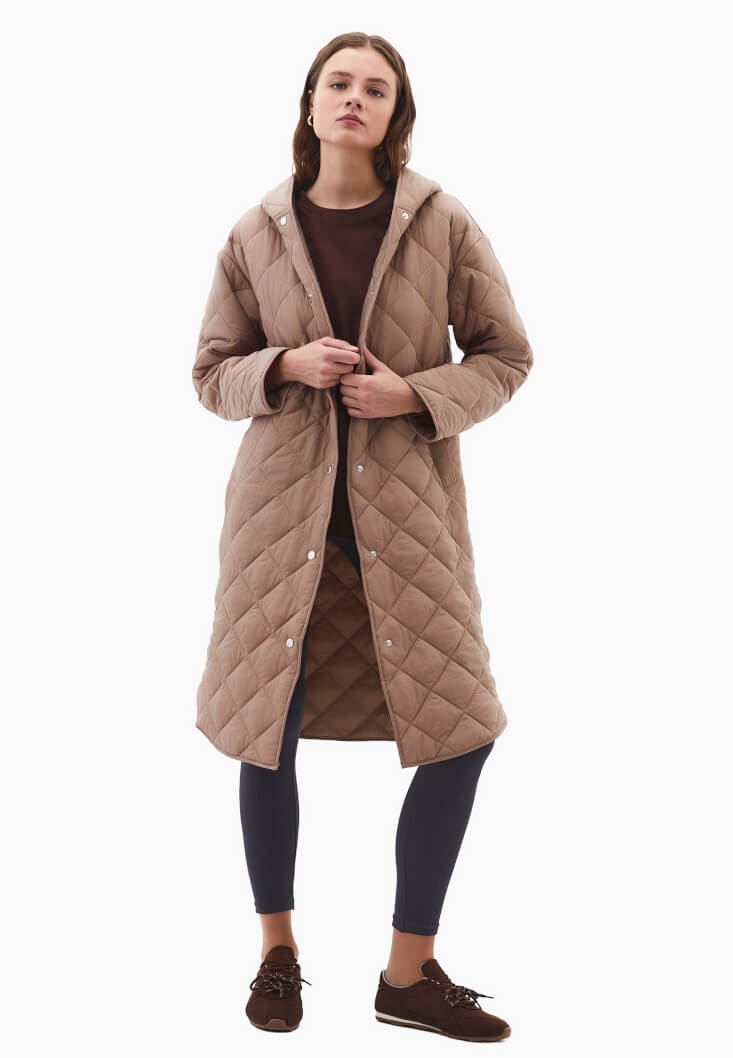• Bayan Kum Beji Kapüşonlu Kapitone Mont