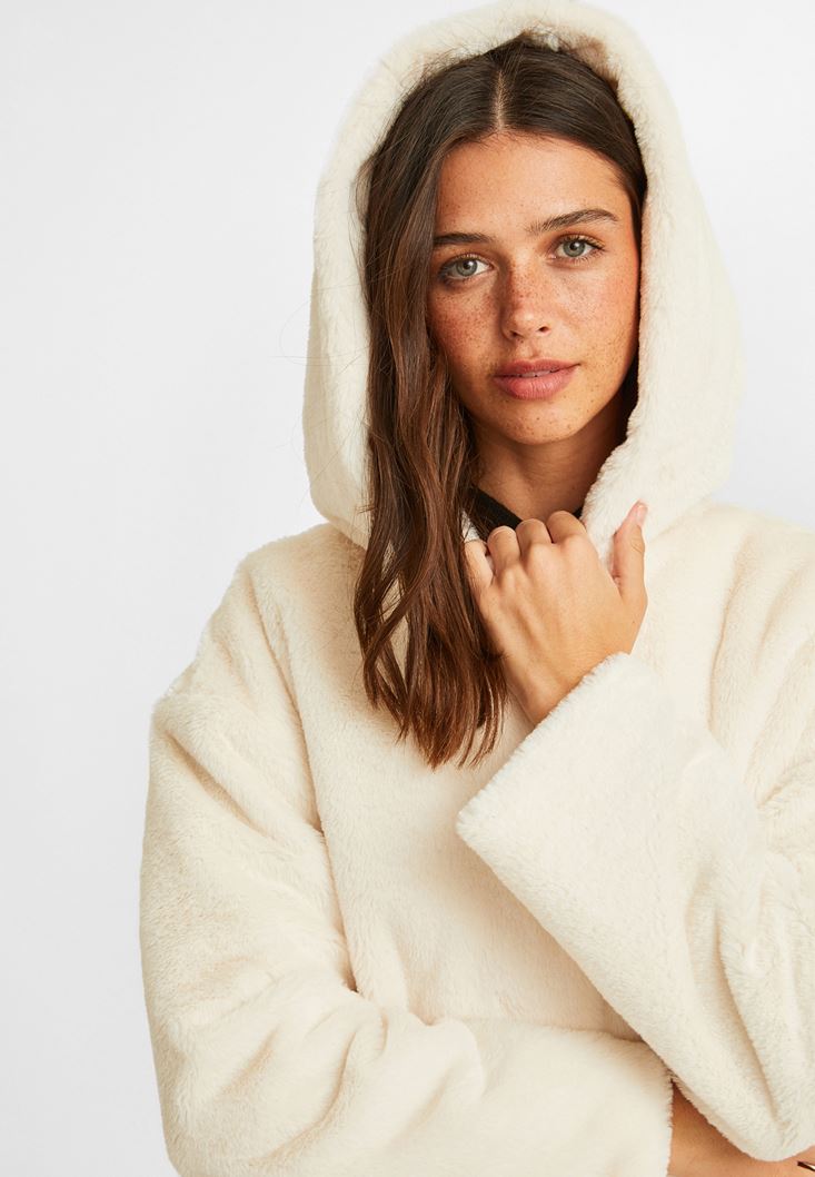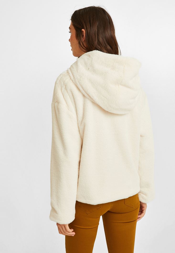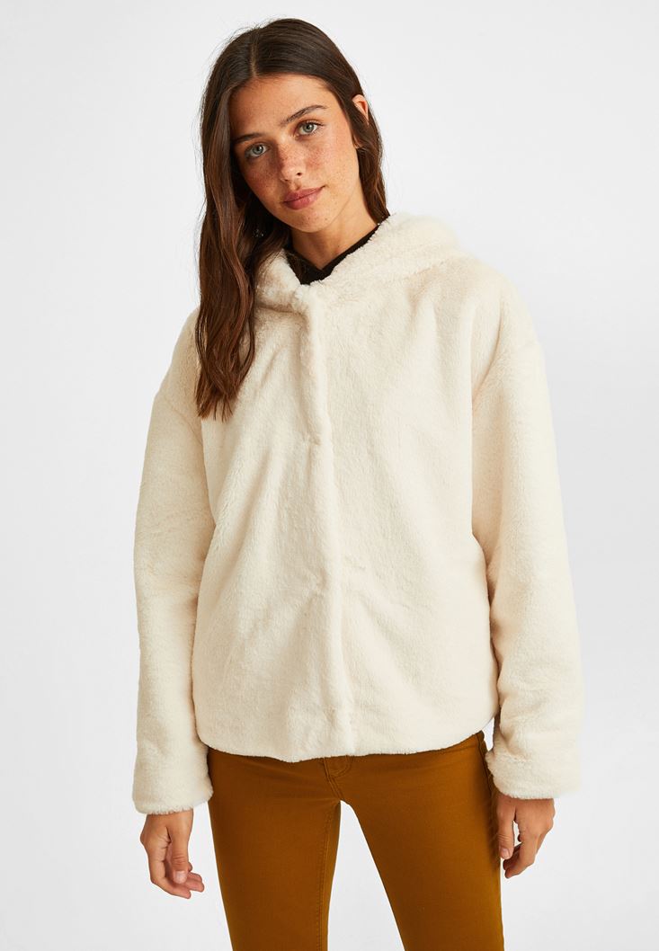 • Bayan Krem Kapüşonlu Kısa Kürk Ceket