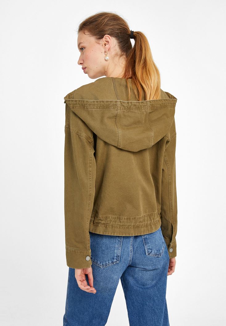 Yeşil Kapüşonlu Kısa Parka Ceket