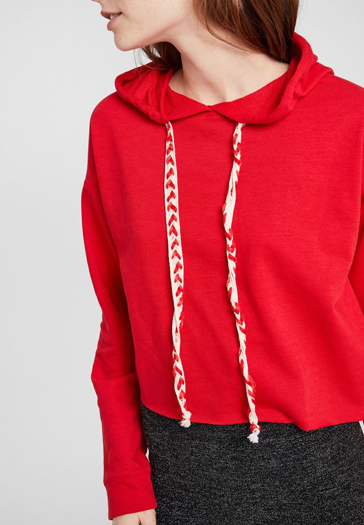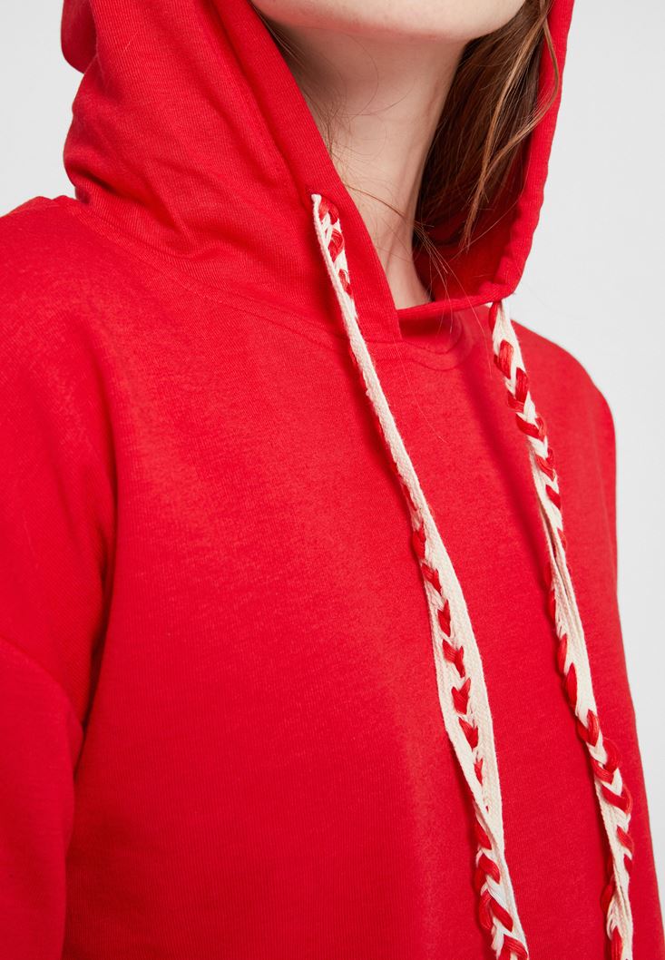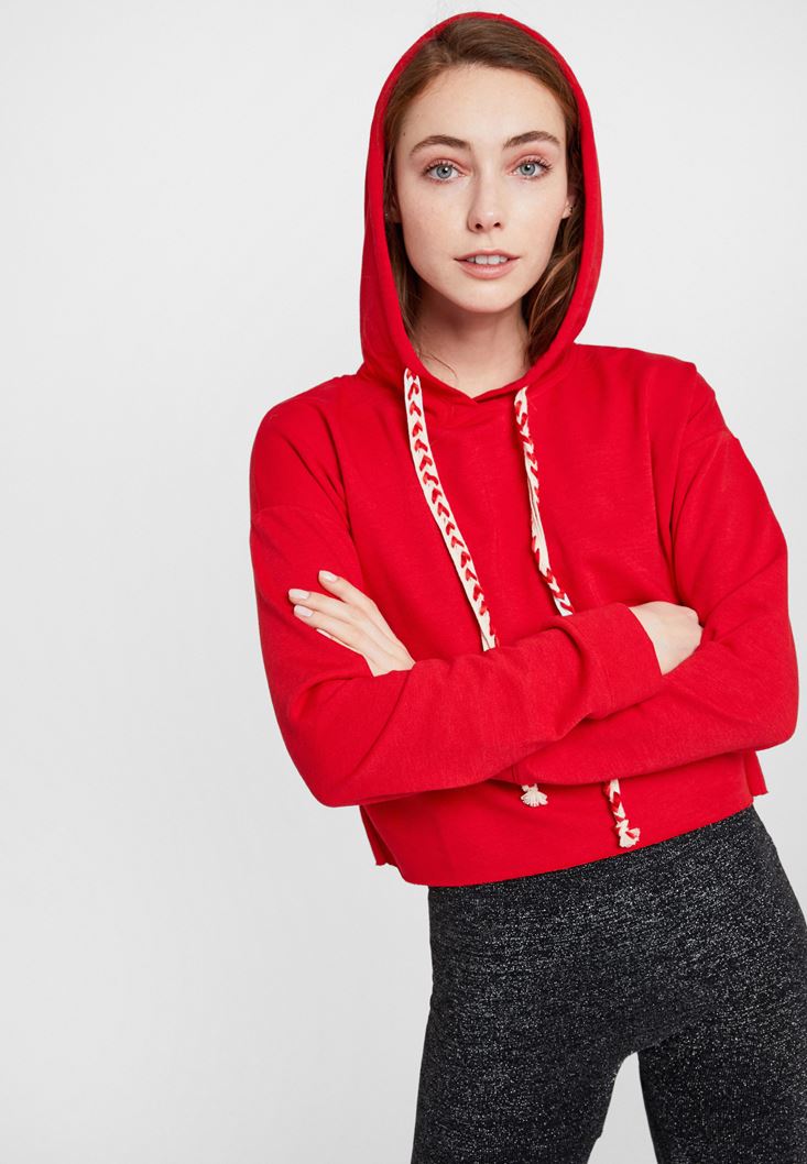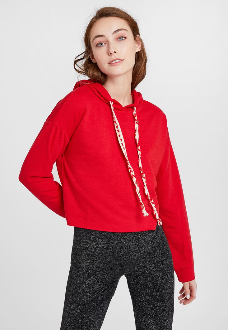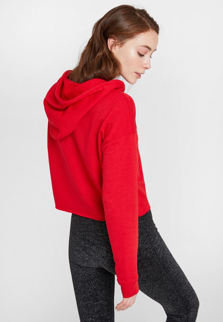 • Bayan Kırmızı Kapüşonlu Kısa Sweatshirt