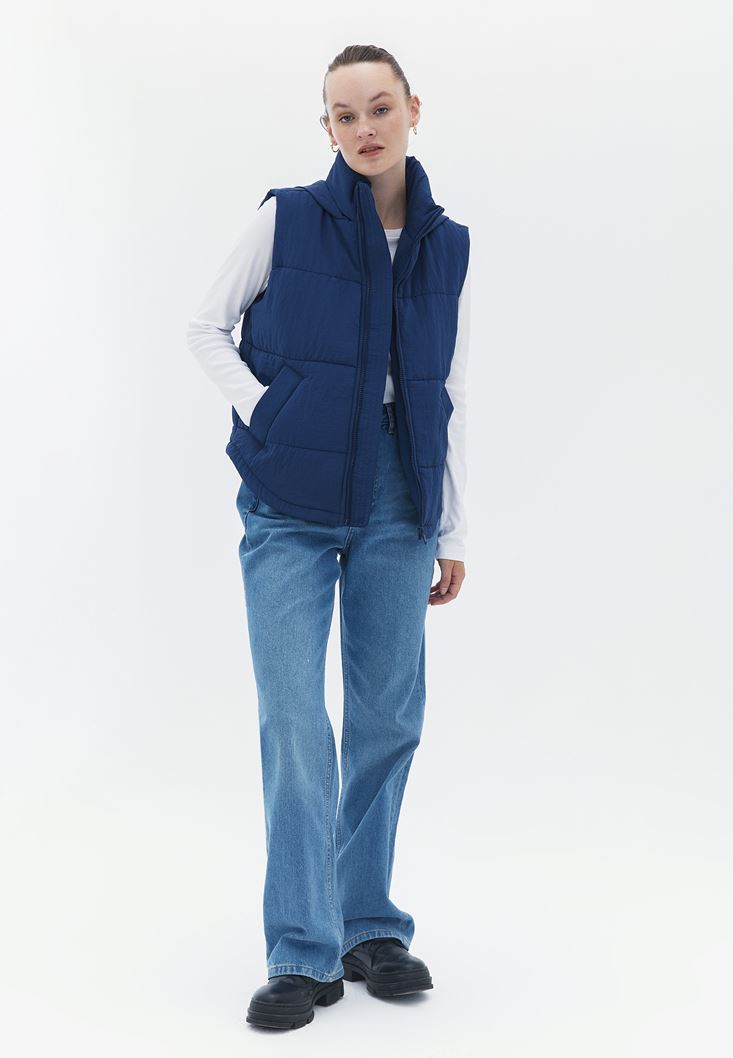 • Bayan Lacivert Kapüşonlu Kısa Yelek