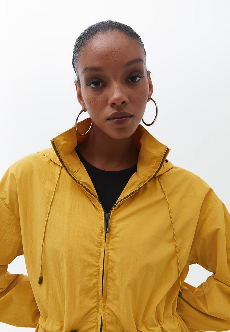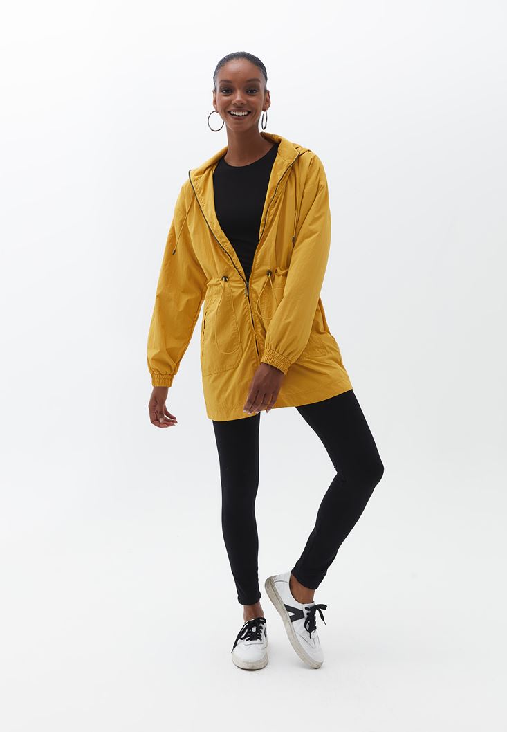 • Bayan Sarı Kapüşonlu Midi Yağmurluk