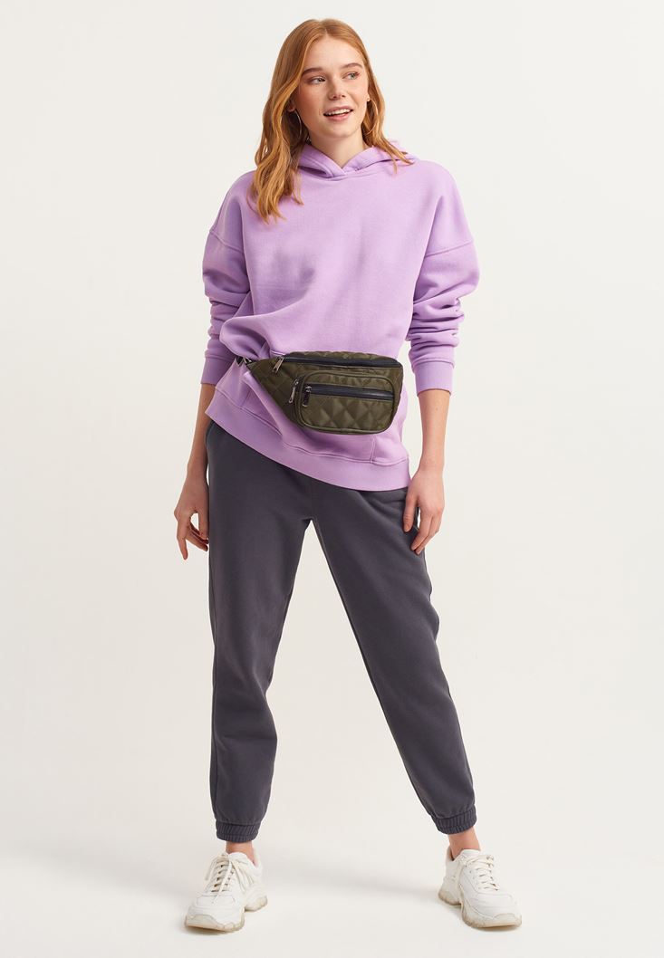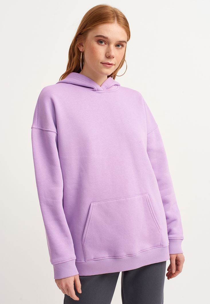 • Bayan Mor Kapüşonlu Oversize Sweatshirt