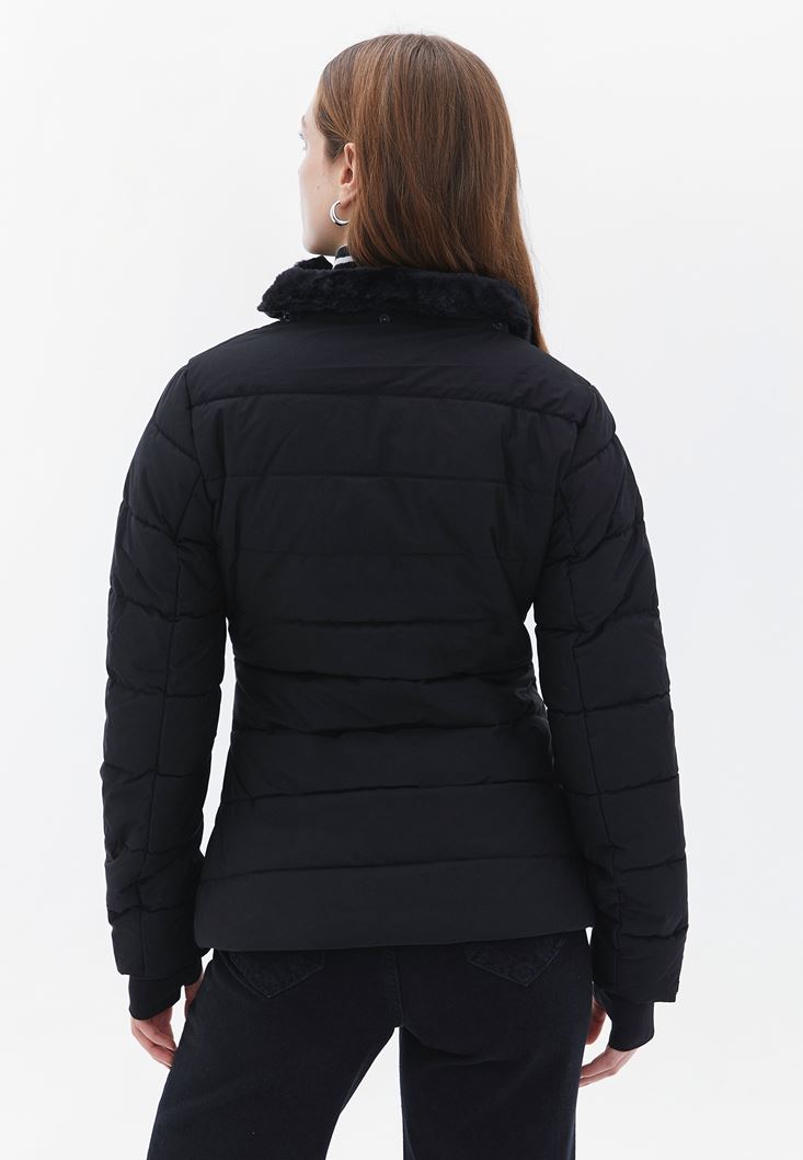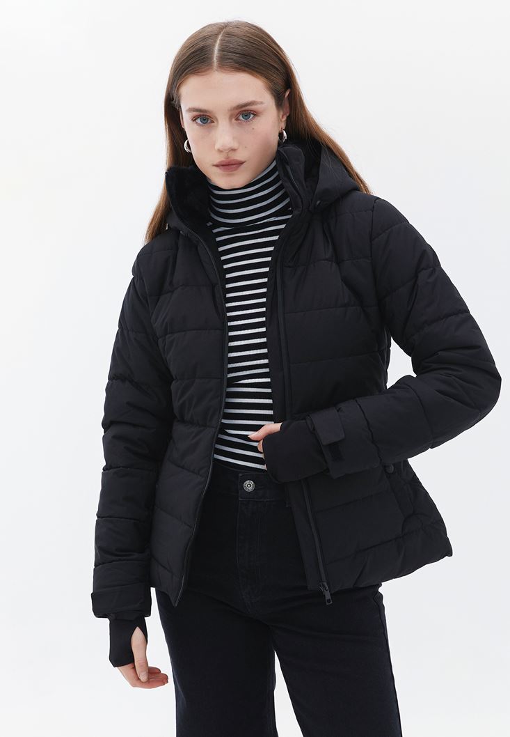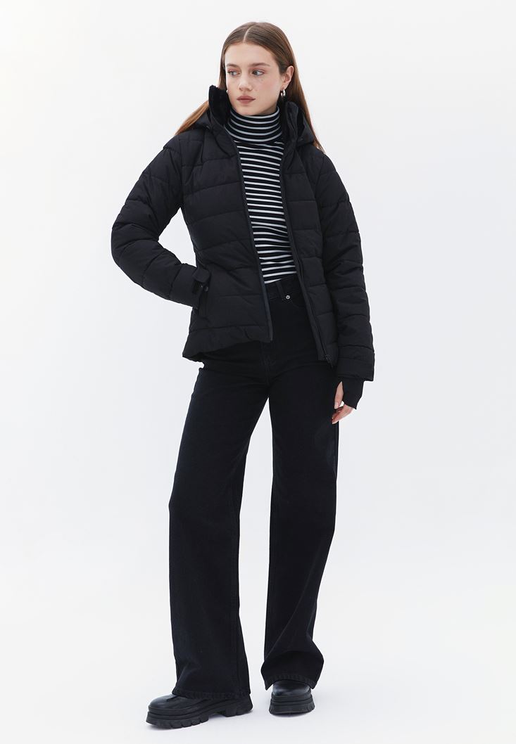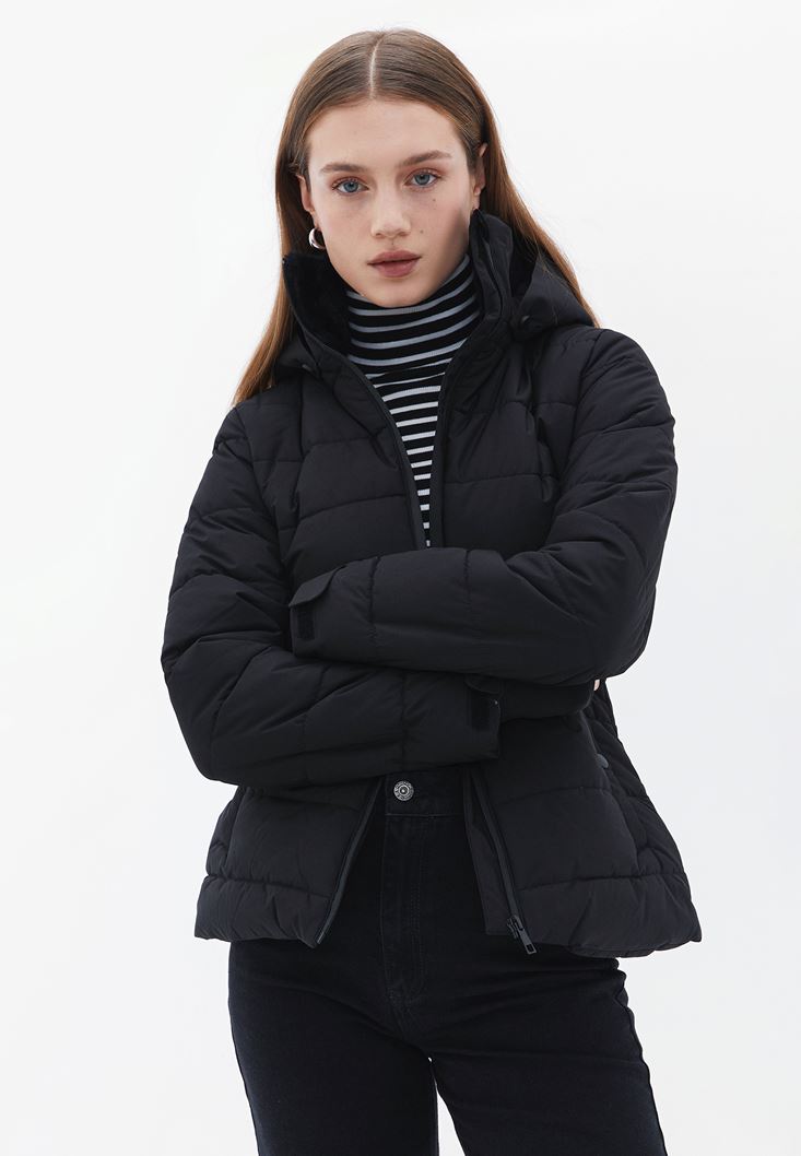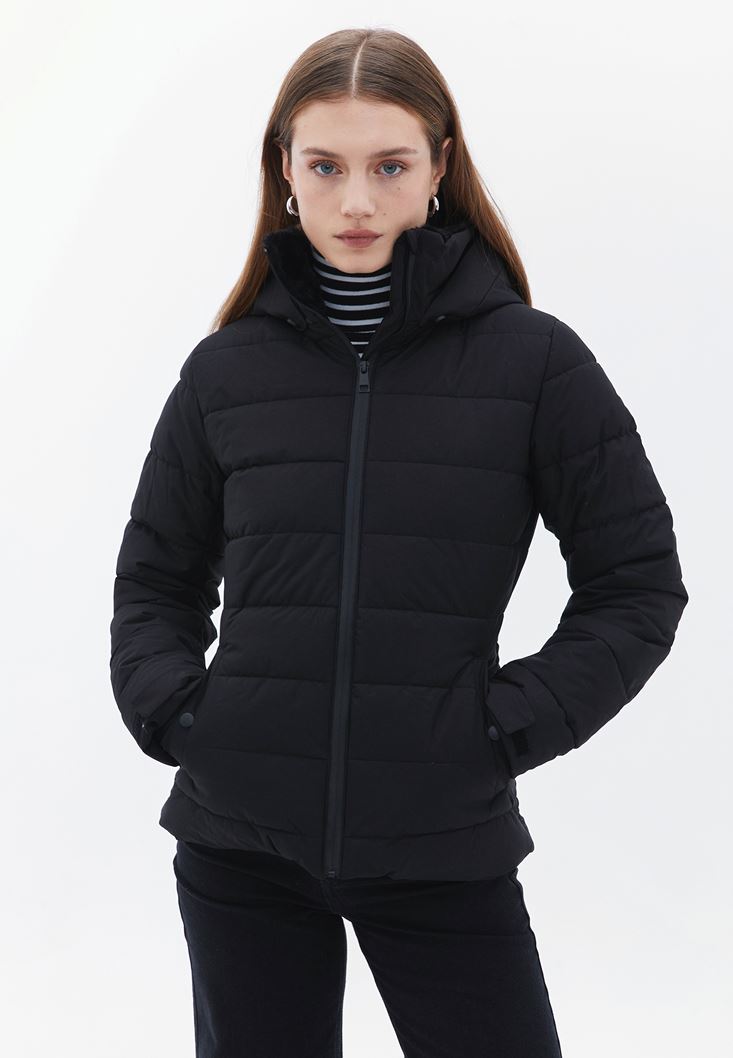 • Bayan Siyah Kapüşonlu Şişme Mont