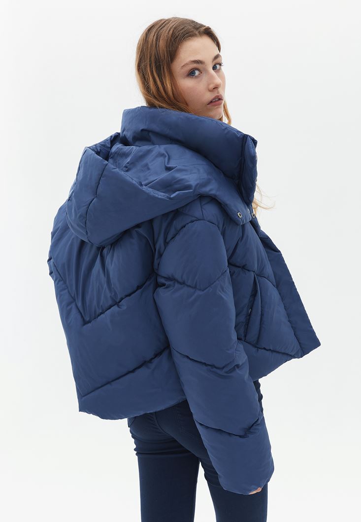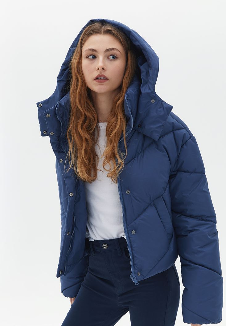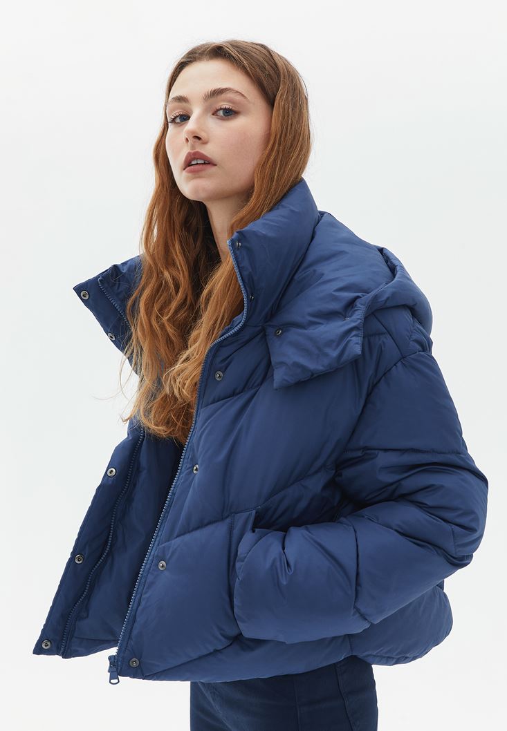 • Bayan Mavi Kapüşonlu Şişme Mont