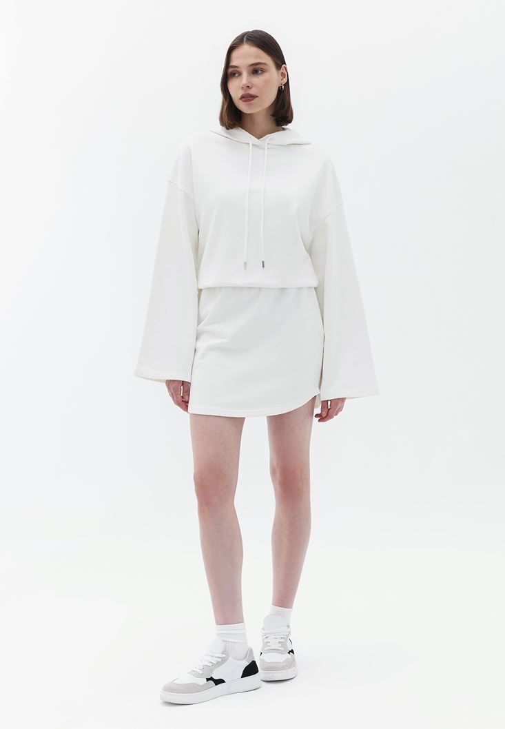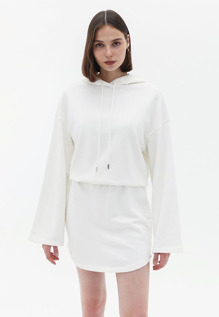 • Bayan Krem Kapüşonlu Sweat Elbise