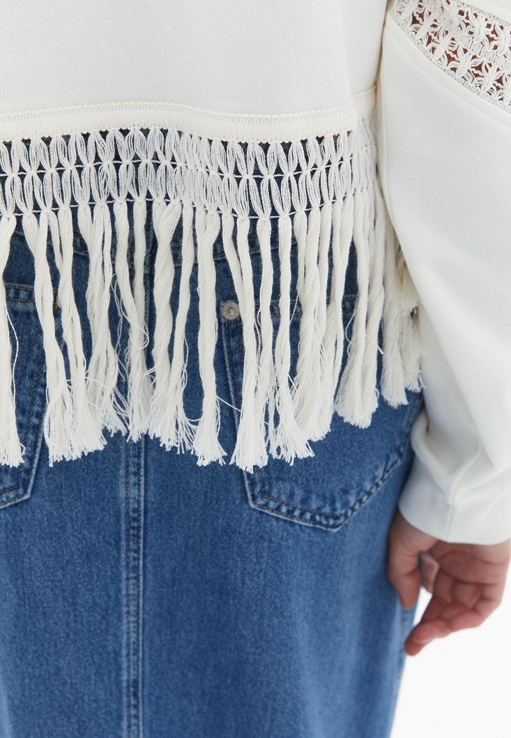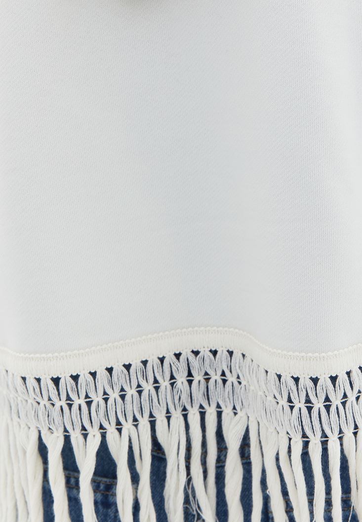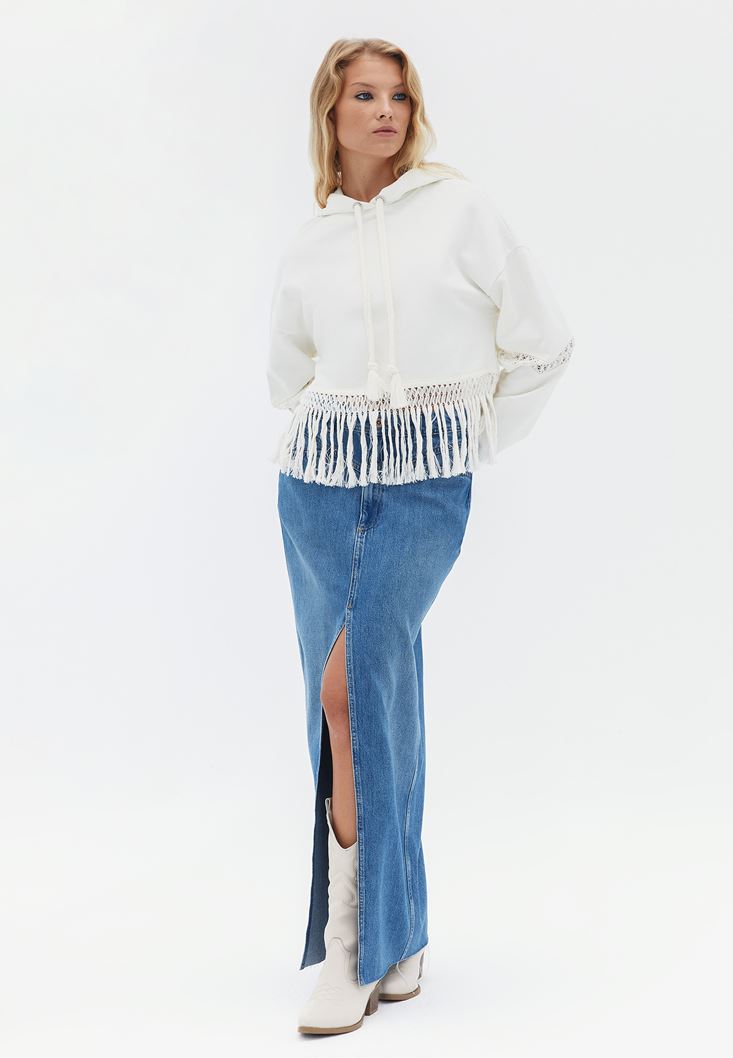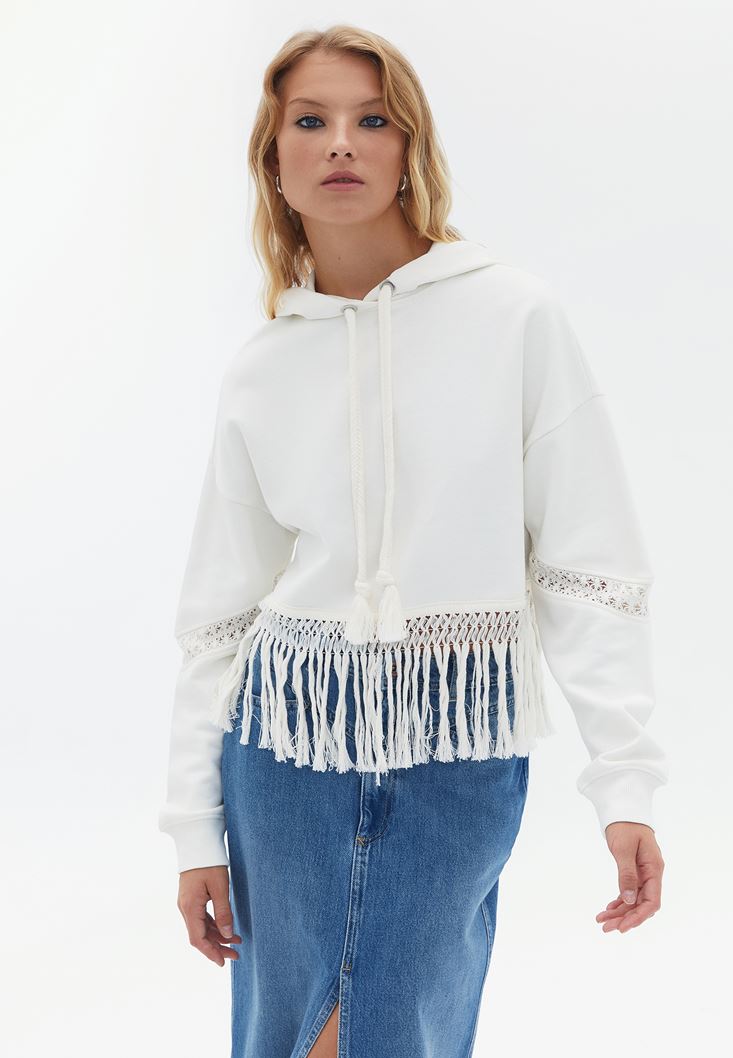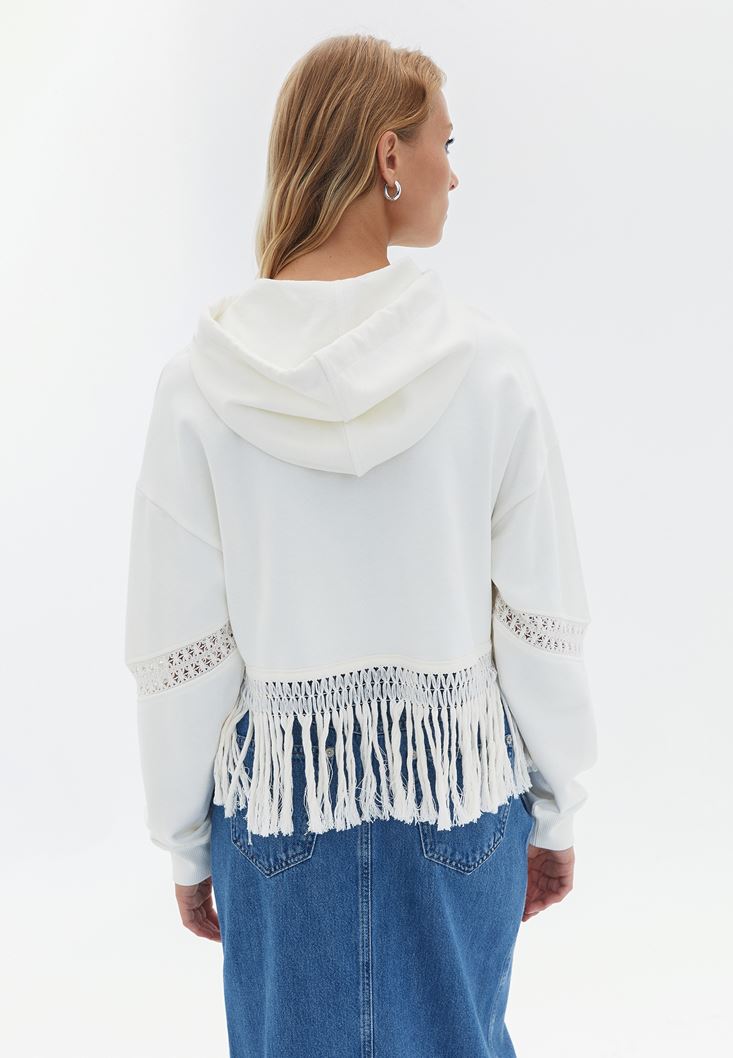Krem Kapüşonlu Sweatshirt