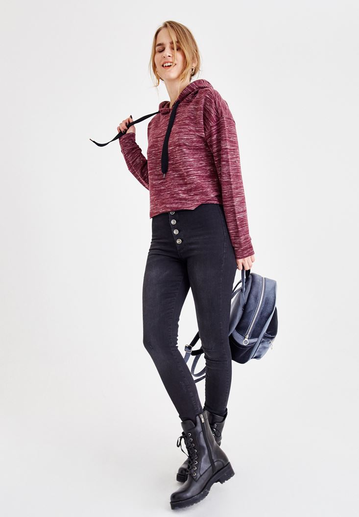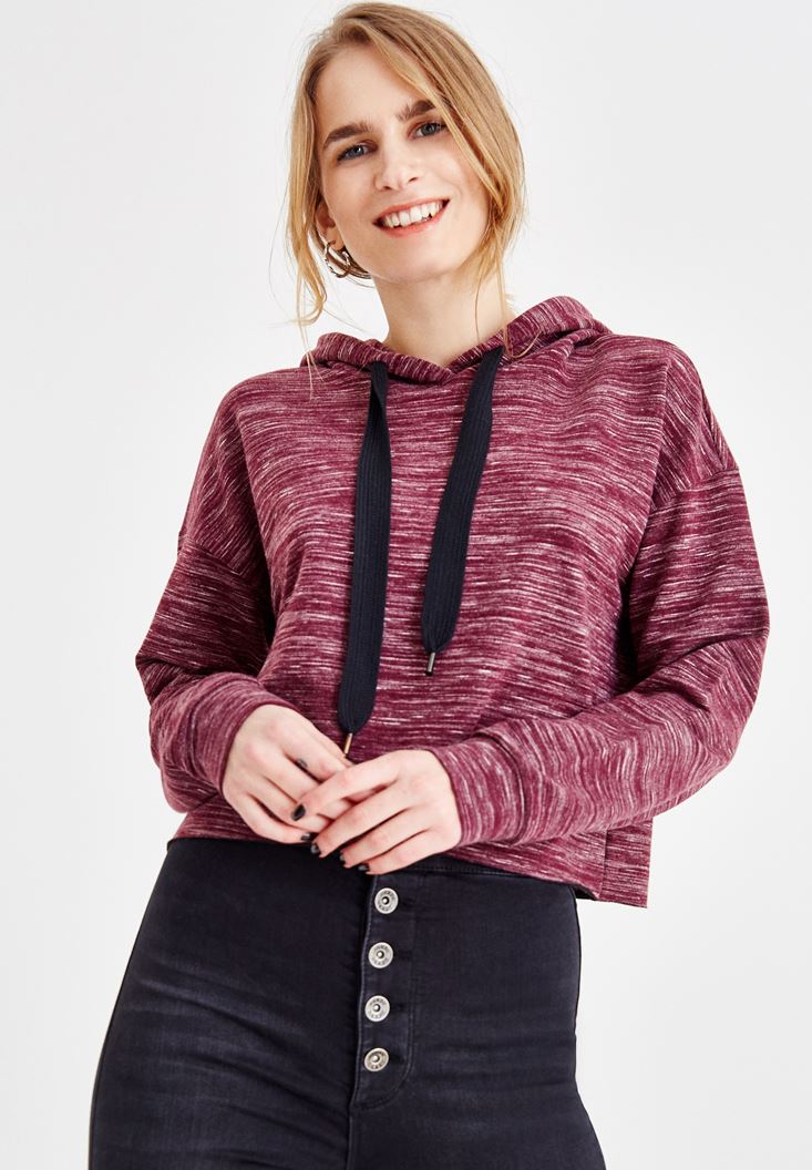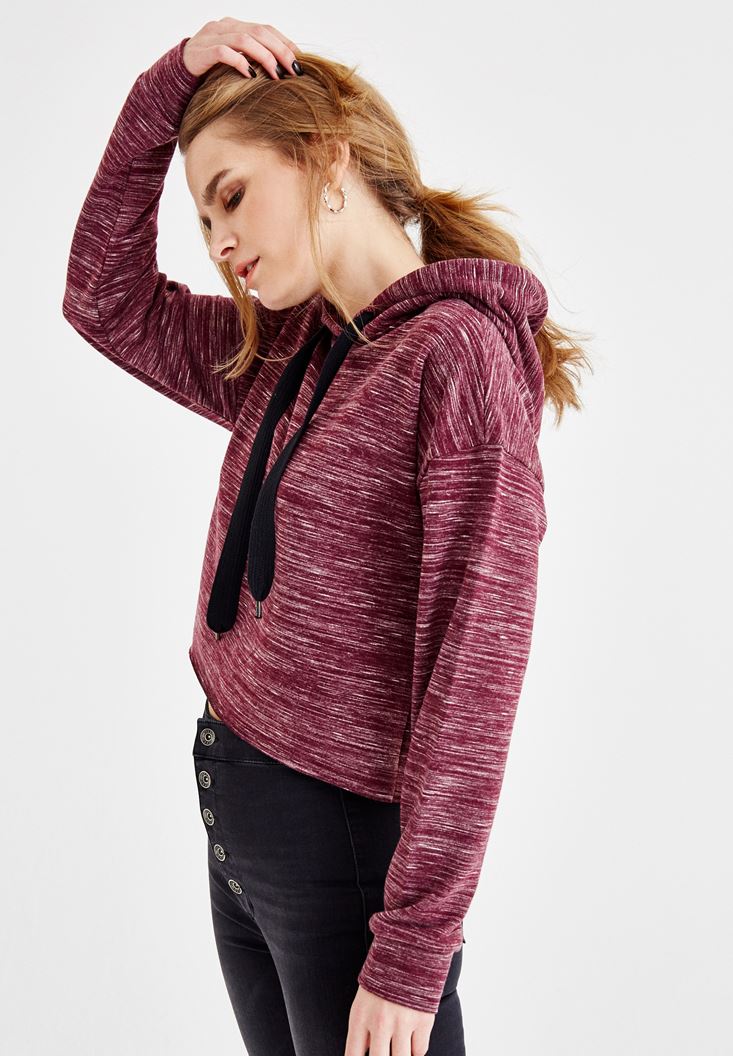 Kapüsonlu uzun kollu sweatshirt detaylari ve konforlu dokusu ile her zaman severek kullanacaginiz parçalardan birisi olacak. Kisa kesimi ile yüksek bel pantolonlarinizi da ön plana çikaran kombinler yapabileceginiz tasarimin kapüson tasariminda bulunan kalin ipler, tasarima enerji kazandiriyor. Kol kesiminde bulunan lastik detaylar kullanim konforu saglarken; sweatshirt modelinin dokusunda bulunan viskon hem yumusak bir kullanim hissi hem de nem transfer özelligi ile hareket özgürlügü sunuyor. Sweatshirt modelini jean pantolon, sort, etek ve tayt gibi parçalarla birlikte kullanabilirsiniz. Kapüsonlu uzun kollu sweatshirt tasarimi ile spor ve günlük sikliginizin tanimini yeniden OXXO'nun detaylardan ve konfordan ilham alan farkli bakis açisi ile yapmanin tadini çikarabilirsiniz.