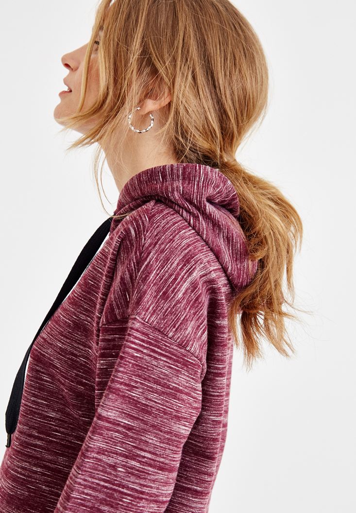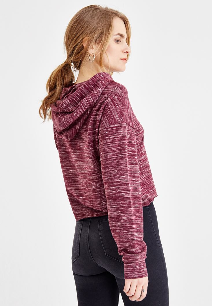 • Bayan Mor Kapüşonlu Uzun Kollu Sweatshirt