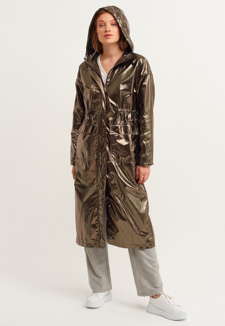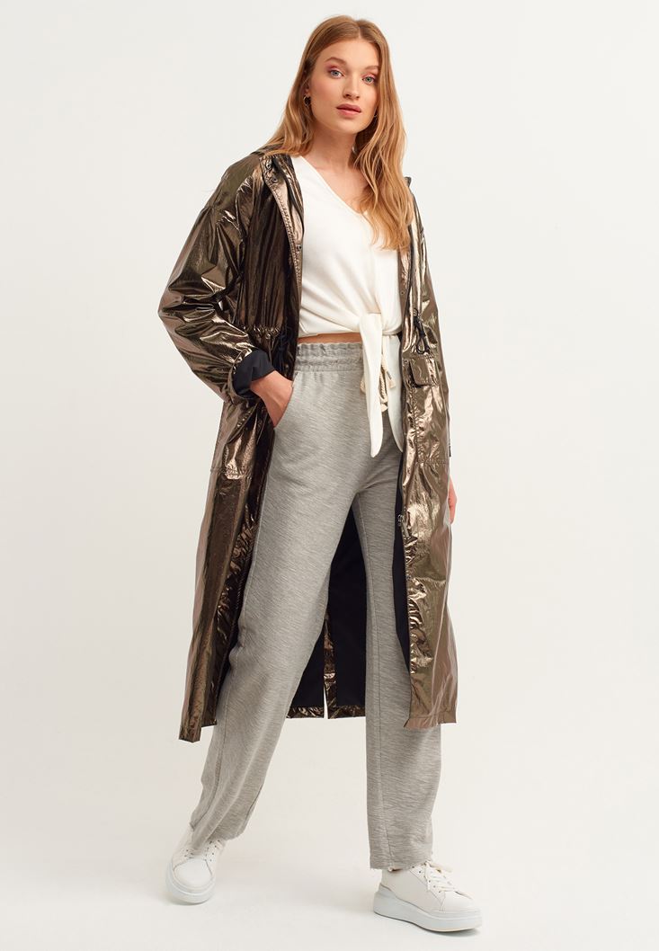 Mevsim koşullarına uygun kombinlerin kurtarıcısı olabilecek bir parça! Işıltısıyla gününe enerji katacak bu uzun yağmurluk ile hemen tanış… Uzun yağmurluk modelinin göz alıcı etkisini sweat pantolonlarla veya jeanlerle birleştirerek harikalar yarat! :)