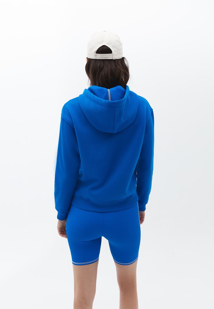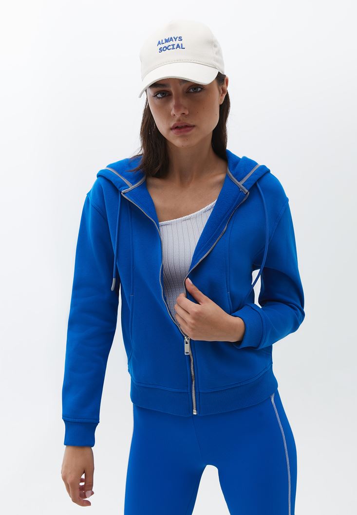 • Bayan Mavi Kapüşonlu ve Fermuarlı Hırka