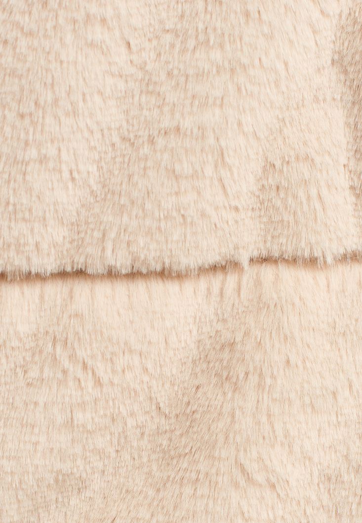 • Bayan Krem Kapüşonlu Vegan Kürk Ceket