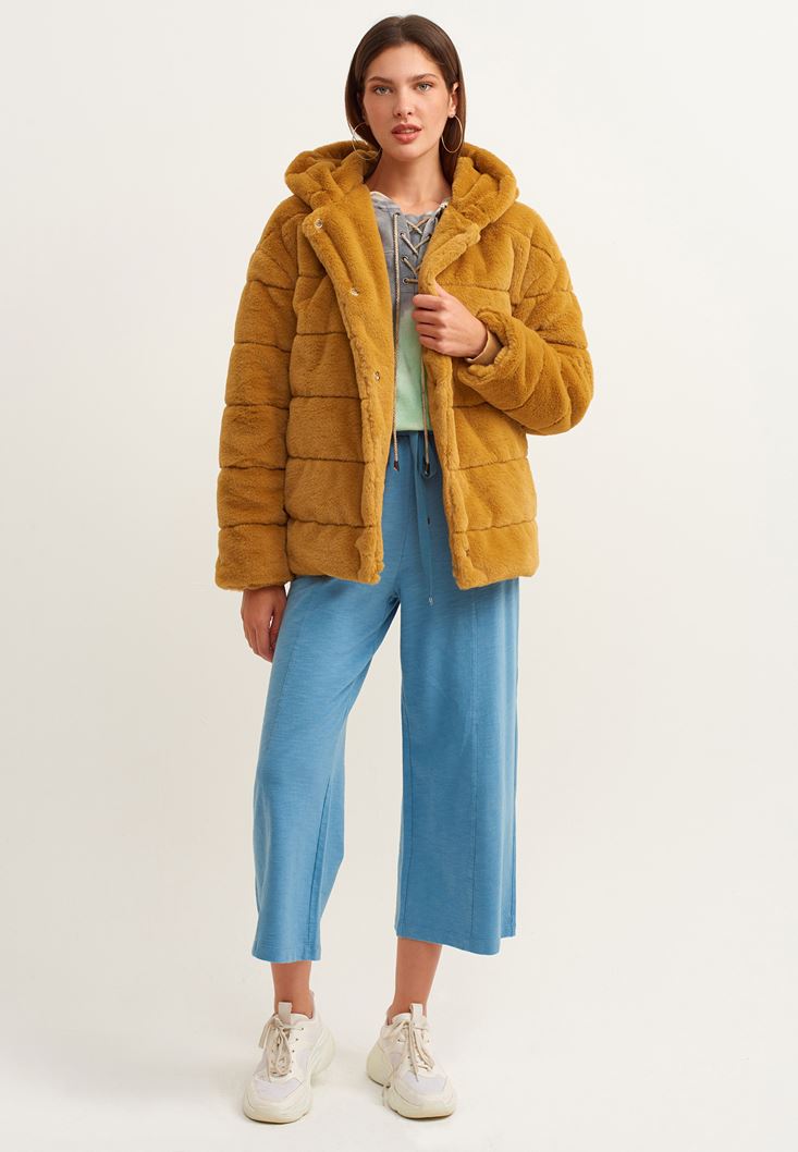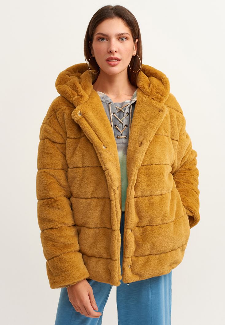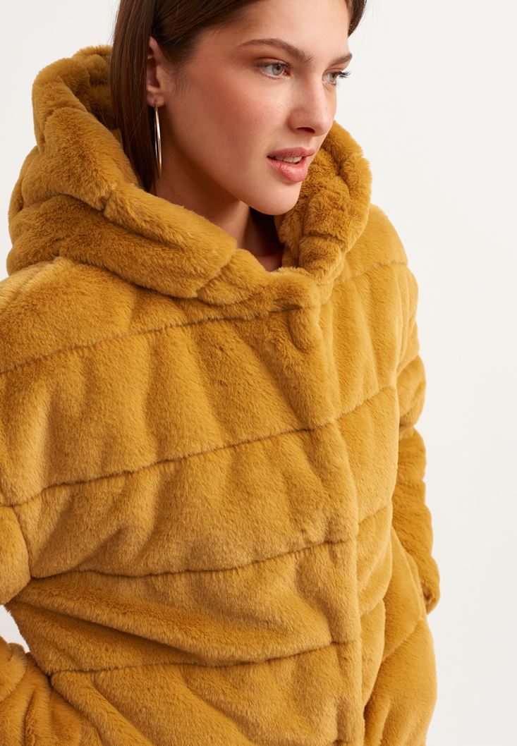 Oxxo Kapüşonlu Vegan Kürk Ceket 2113683853