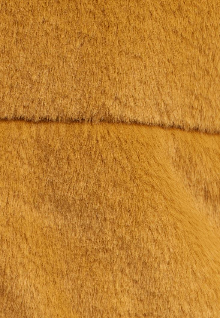 • Bayan Turuncu Kapüşonlu Vegan Kürk Ceket
