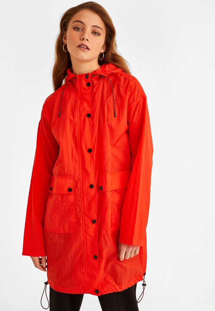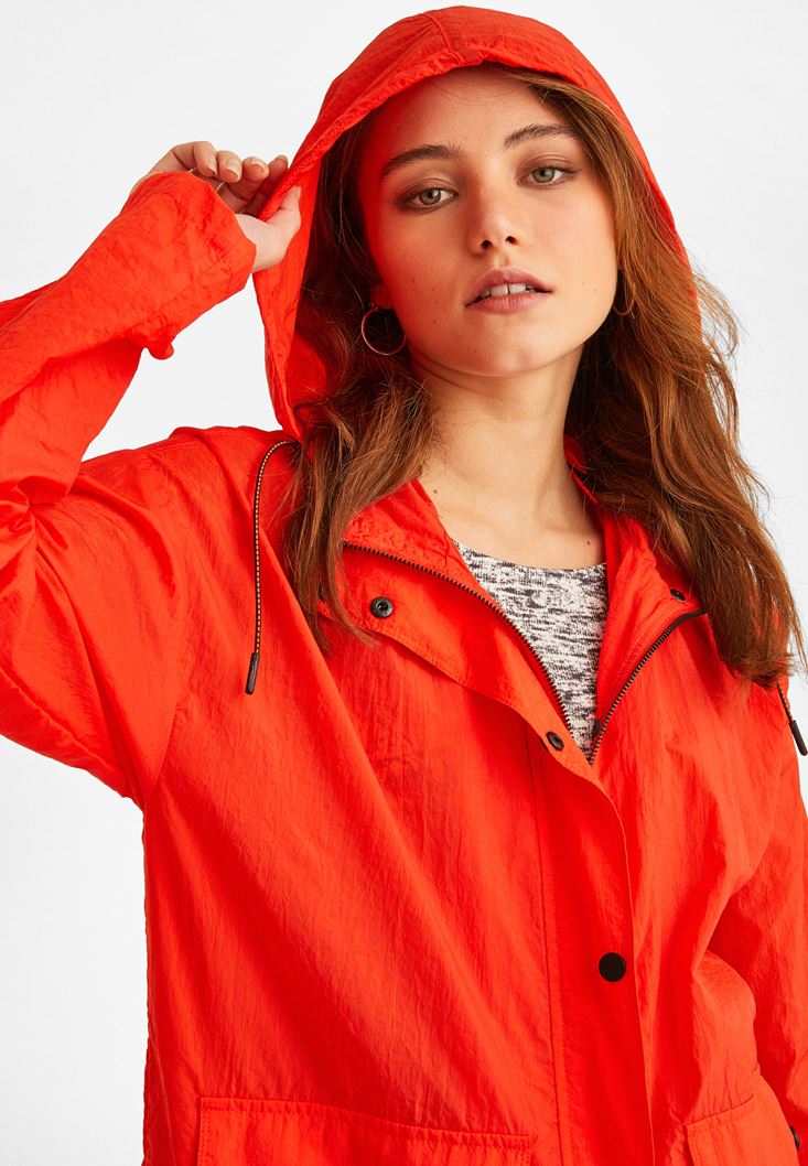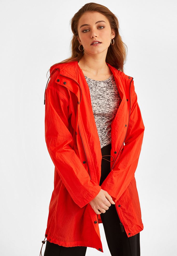 Kapüşonlu Yağmurluk modeli, hafif kumaşı ve hoş görünümü ile yeni sezonda sizlerle buluşuyor. Kadın ceket modeli, yağmurluk formu ve kapüşonlu yapısının yanı sıra alt kısmındaki büzgü ayrıntısıyla da Oxxo'da ön plana çıkıyor. Kapüşonlu yağmurluk modeli, ön kısmında ve ceplerinde bulunan çıtçıt detayı ile oldukça dikkat çekiyor. Kadın ceket modelini, bluzlarla ve bol paçalı pantolonlarla oluşturacağınız benzersiz kombinler içerisinde rahatlıkla kullanabilirsiniz. Sweatlerle ve sneakerlarla da bir araya getirebileceğiniz kapüşonlu yağmurluk modeli sayesinde sportif şıklığa ulaşabilirsiniz. Oxxo'nun hoş dokularla ve göz alıcı renklerle sizlere sunduğu kadın ceket modelleri ile tarzınızı kolaylıkla şekillendirebilirsiniz.