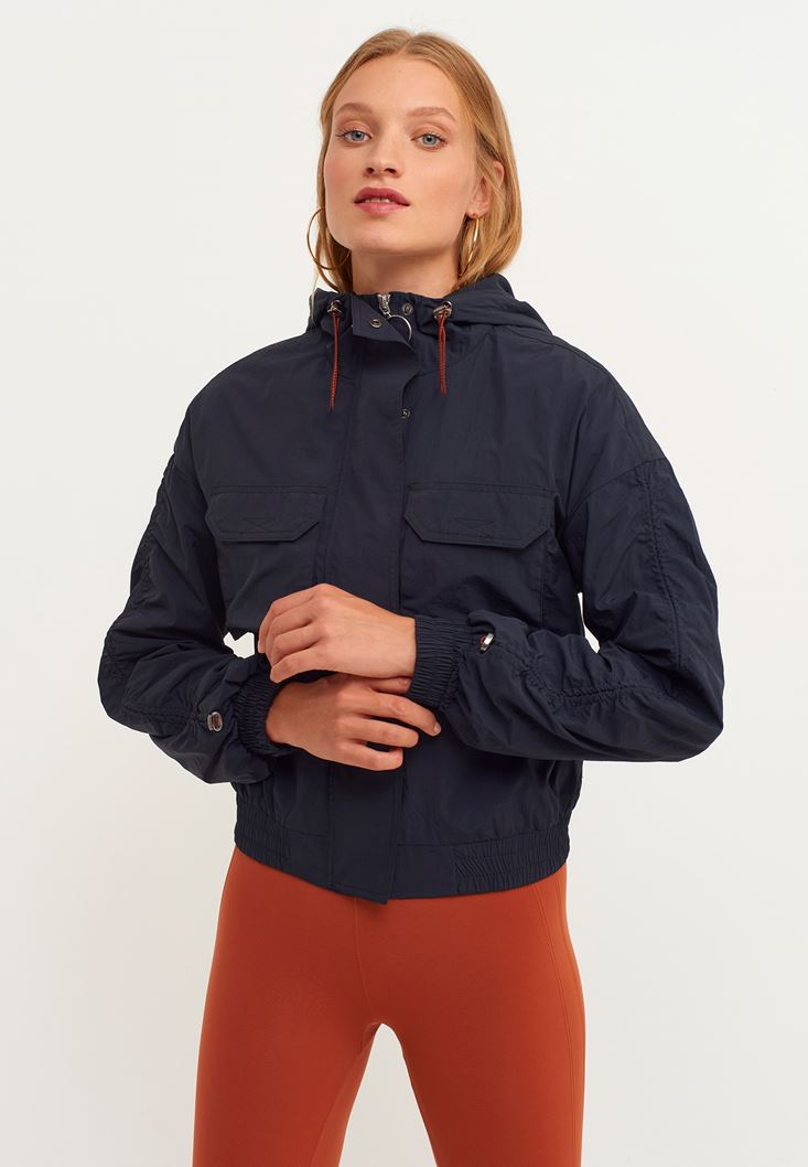 Siyah Kapüşonlu Yağmurluk