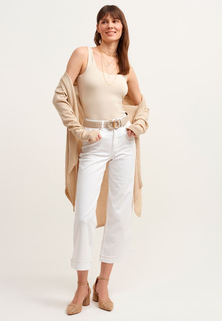 Kare Yaka Atlet ve Bol Paça Pantolon Kombini