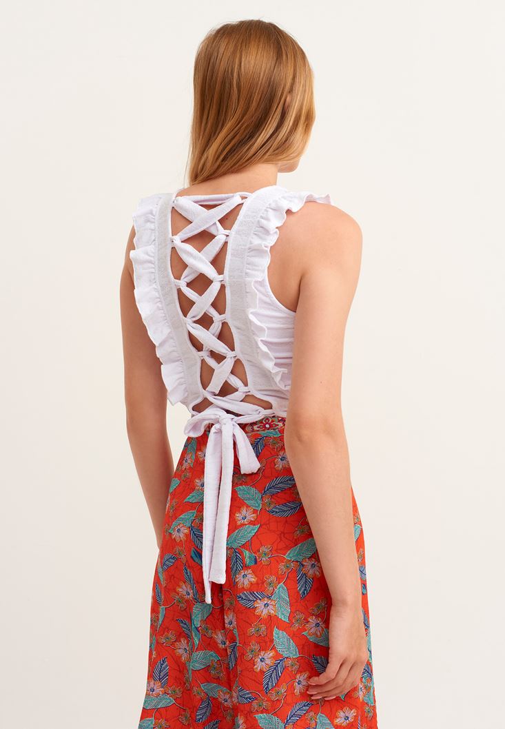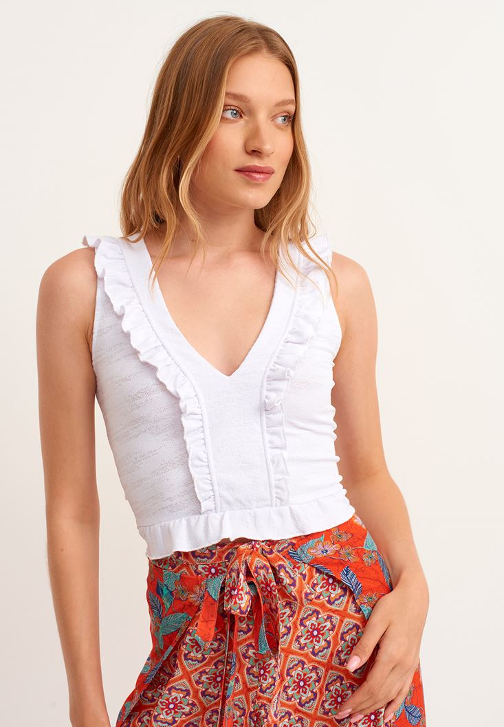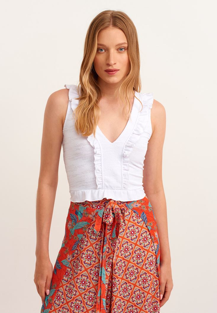 Fırfırlı Crop Top ve Yırtmaçlı Pantolon Kombini