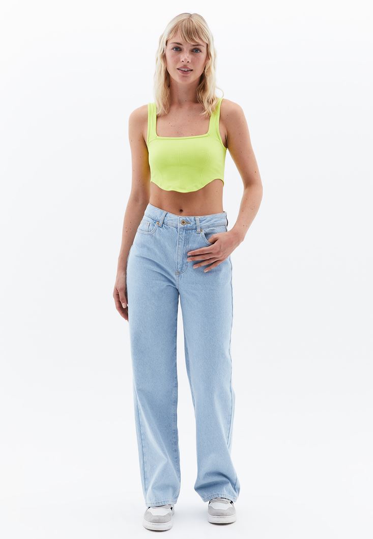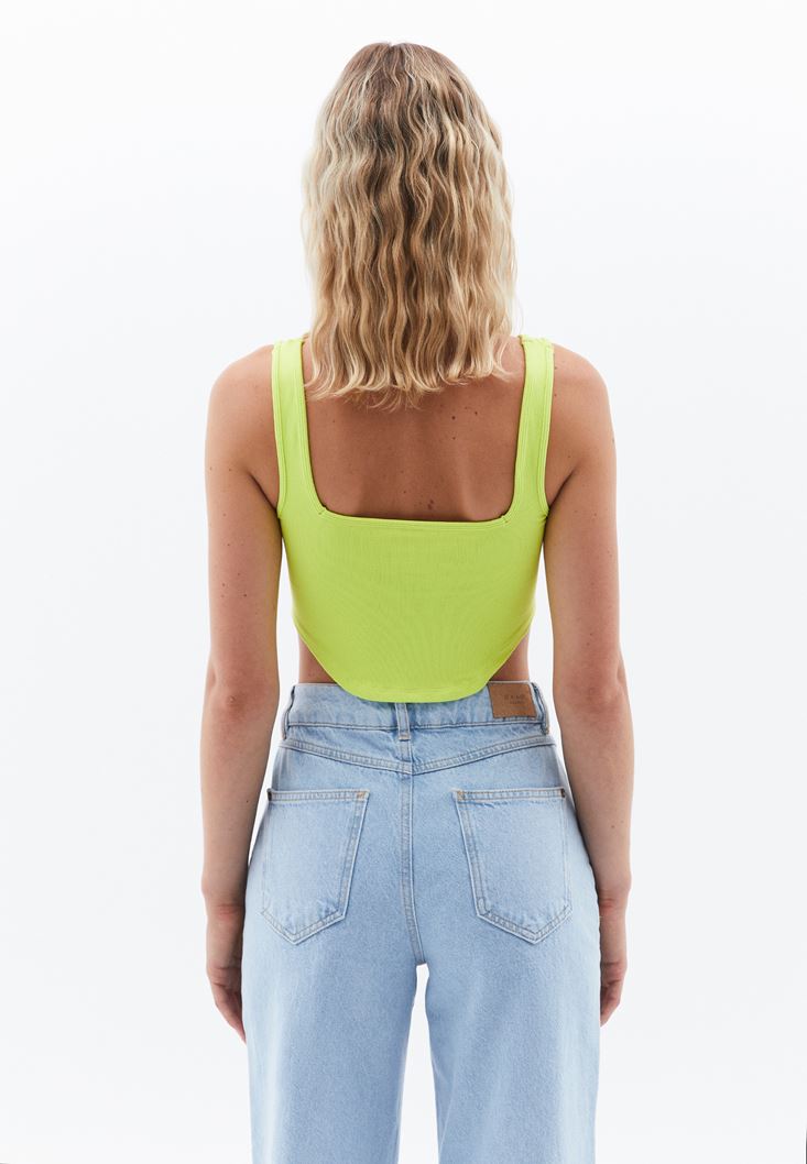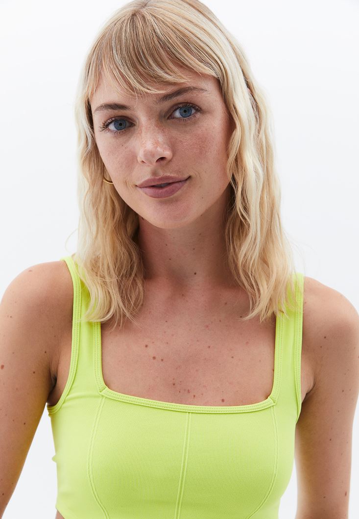 Yeşil Kare Yaka Seamless Crop Top