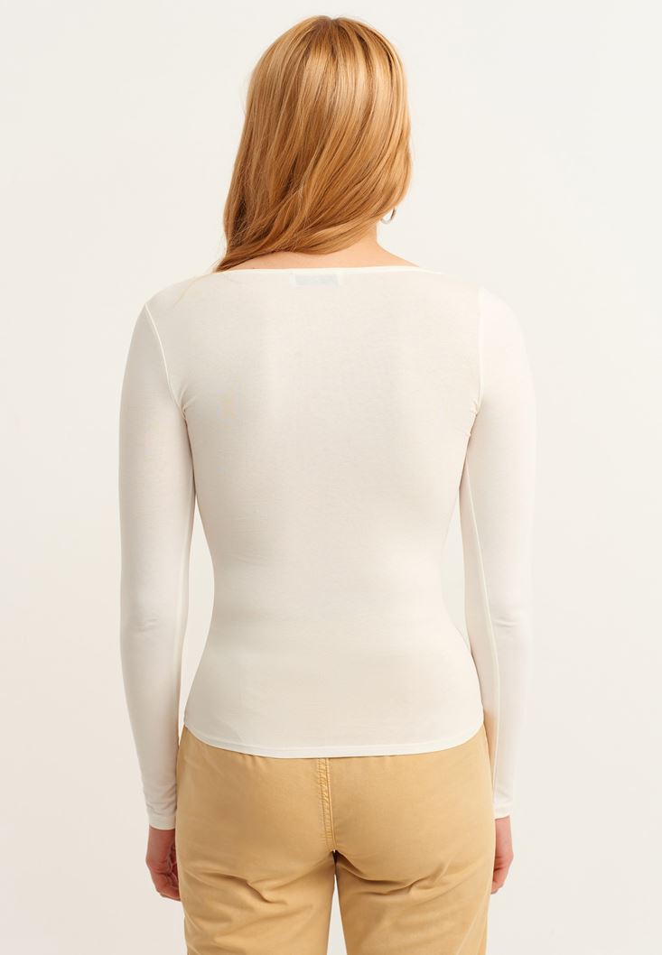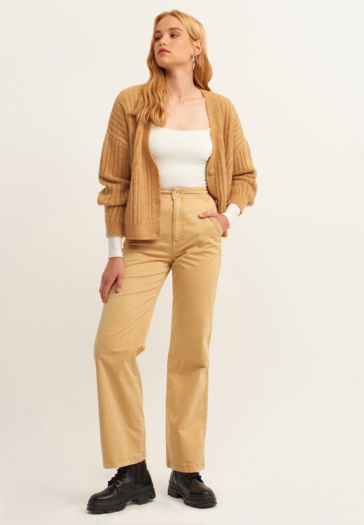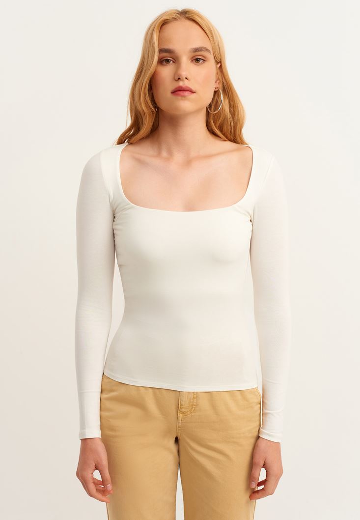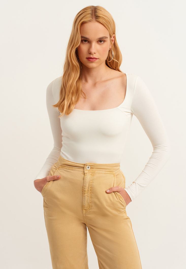 Kare Yaka Uzun Kollu Tişört ve Wide-Leg Pantolon Kombini