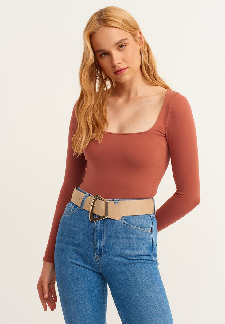Fit: Bodycon / Yaka: Square-Neck / Kol Boyu Grubu: Long Sleeve