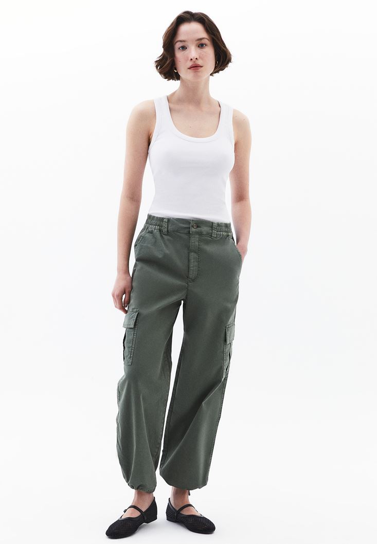 Yüksek Bel Kargo Cepli Pantolon