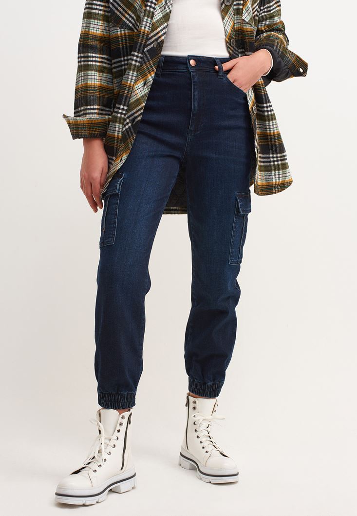 • Bayan Mavi Kargo Jogger Denim Pantolon