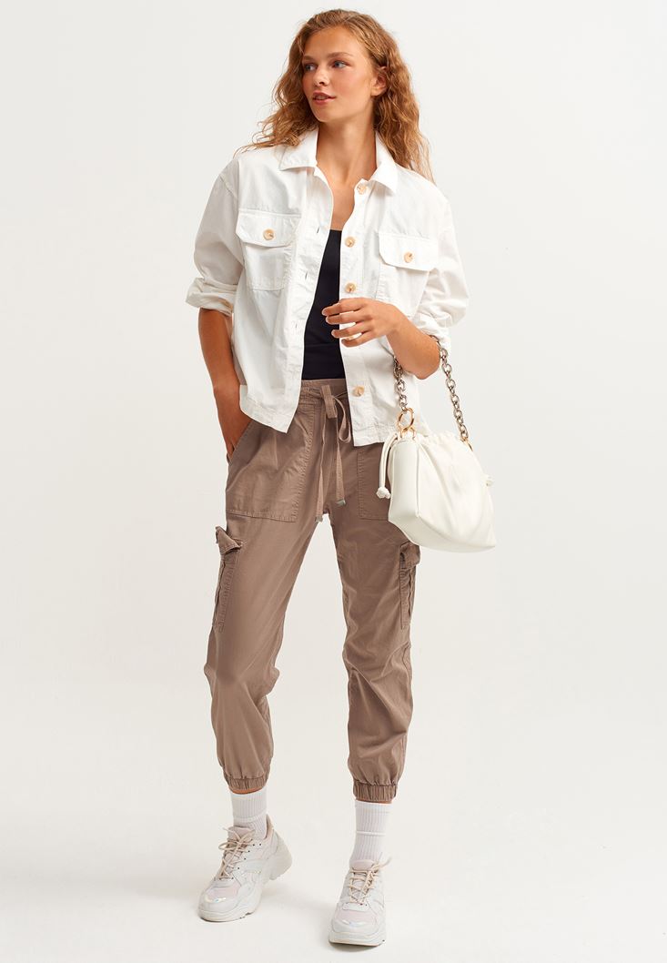 • Bayan Açık Kahverengi Kargo Jogger Pantolon
