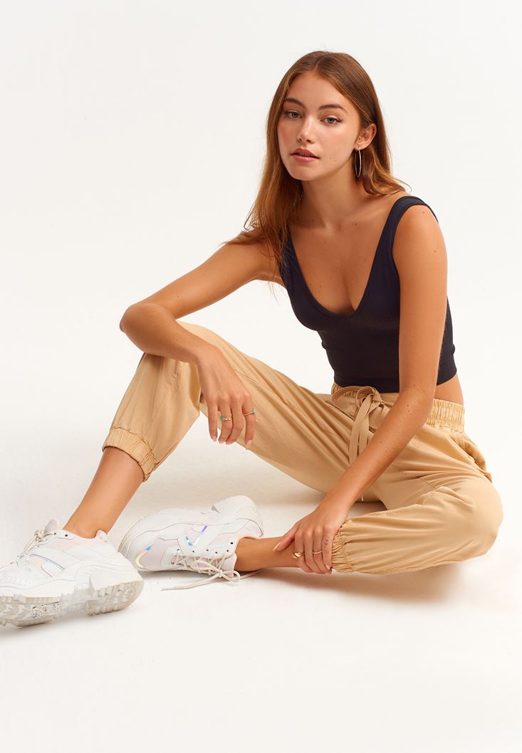Vazgeçilmez jogger kalıbın kargo formu ile buluşması oldukça etkileyici! Ütüsüz bir şekilde kullanılabilen jogger pantolon modeli ile günlük hayatında konforu yakalaman mümkün... Onu dikişsiz crop atletlerle ve yüksek tabanlı sneakerlar ile kullanarak uzun yürüyüşlere çıkabilir veya arkadaşlarınla buluşmak için hazır olabilirsin :)