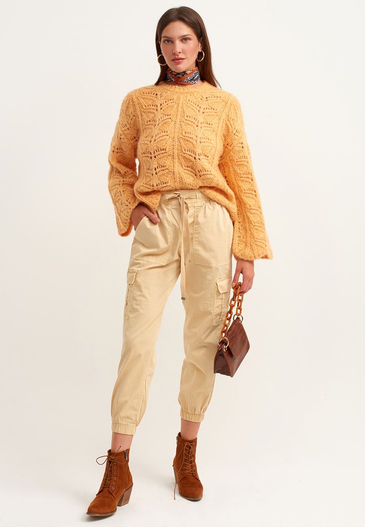 Vazgeçilmez jogger kalıbın kargo formu ile buluşması oldukça etkileyici! Ütüsüz bir şekilde kullanılabilen jogger pantolon modeli ile günlük hayatında konforu yakalaman mümkün... Onu dikişsiz crop atletlerle ve yüksek tabanlı sneakerlar ile kullanarak uzun yürüyüşlere çıkabilir veya arkadaşlarınla buluşmak için hazır olabilirsin :)