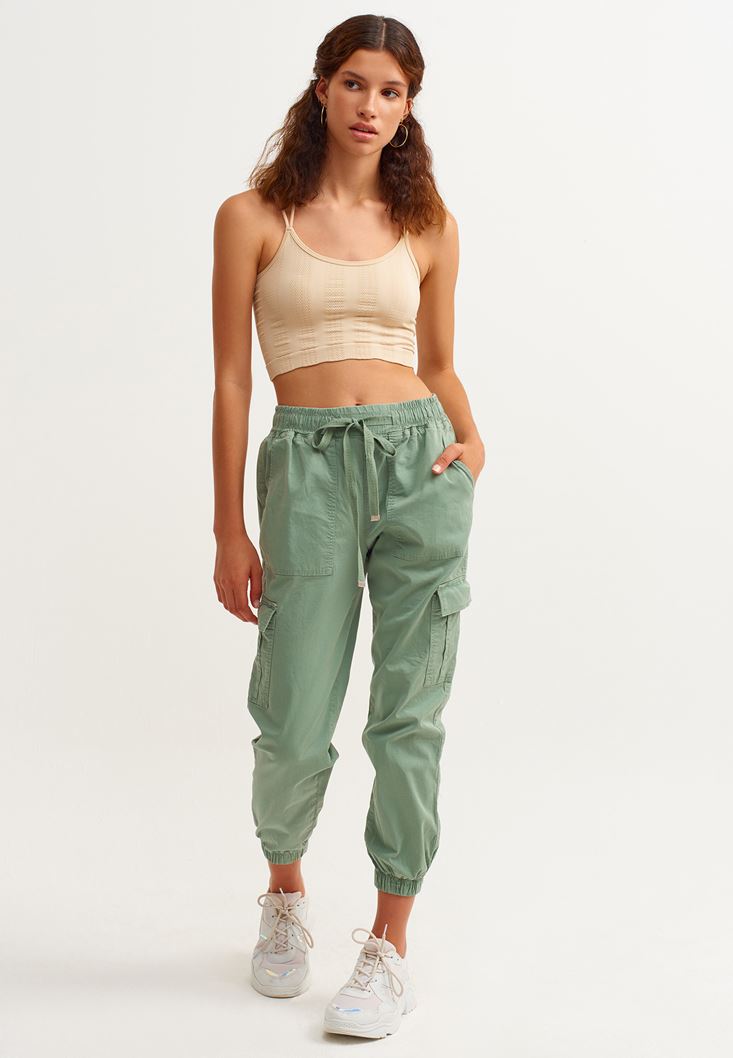 Vazgeçilmez jogger kalıbın kargo formu ile buluşması oldukça etkileyici! Ütüsüz bir şekilde kullanılabilen jogger pantolon modeli ile günlük hayatında konforu yakalaman mümkün... Onu dikişsiz crop atletlerle ve yüksek tabanlı sneakerlar ile kullanarak uzun yürüyüşlere çıkabilir veya arkadaşlarınla buluşmak için hazır olabilirsin :)