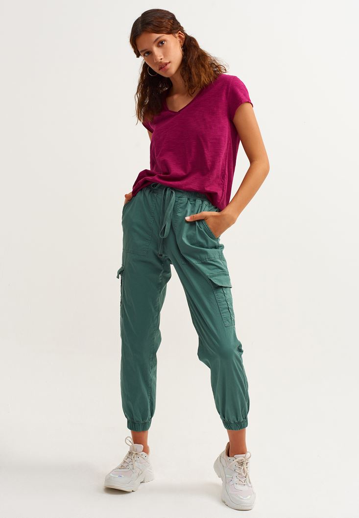 Vazgeçilmez jogger kalıbın kargo formu ile buluşması oldukça etkileyici! Ütüsüz bir şekilde kullanılabilen jogger pantolon modeli ile günlük hayatında konforu yakalaman mümkün... Onu dikişsiz crop atletlerle ve yüksek tabanlı sneakerlar ile kullanarak uzun yürüyüşlere çıkabilir veya arkadaşlarınla buluşmak için hazır olabilirsin :)