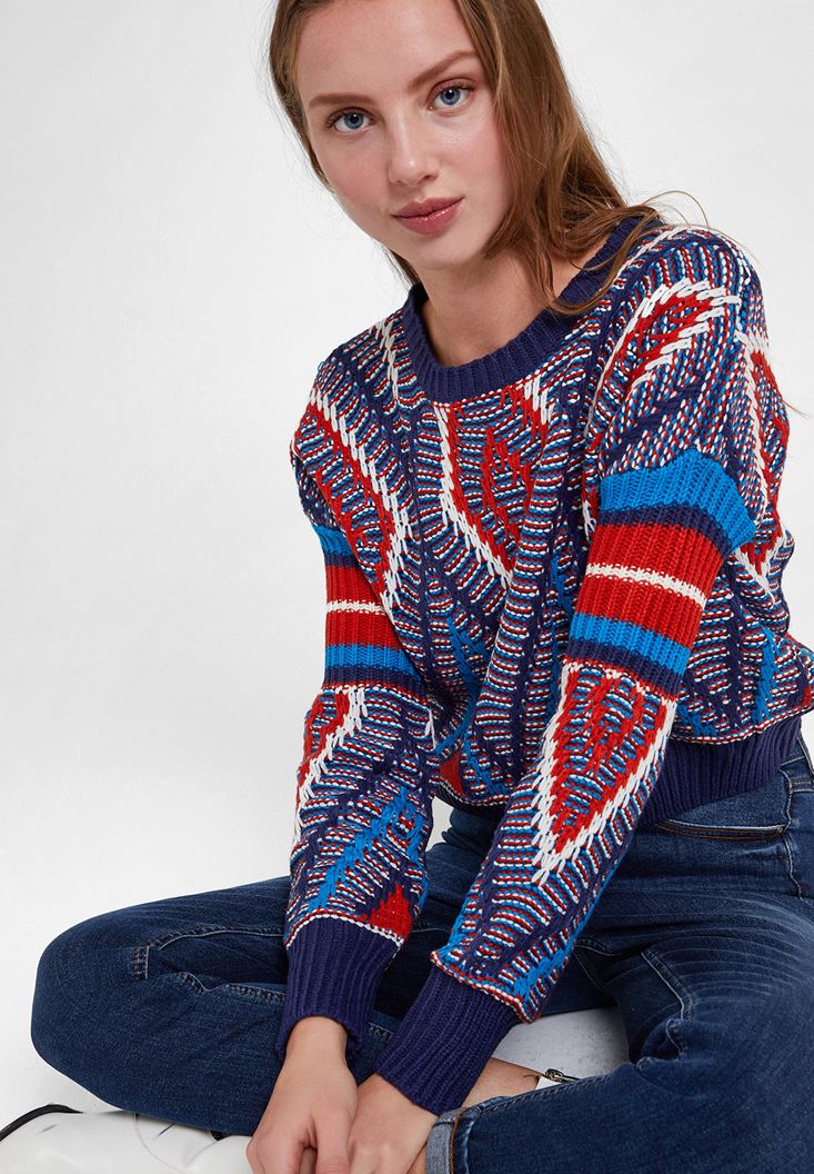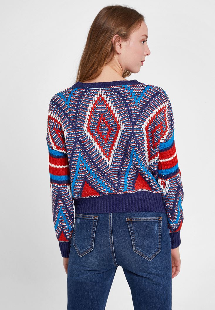 • Bayan Lacivert Karışık Desen Detaylı Triko
