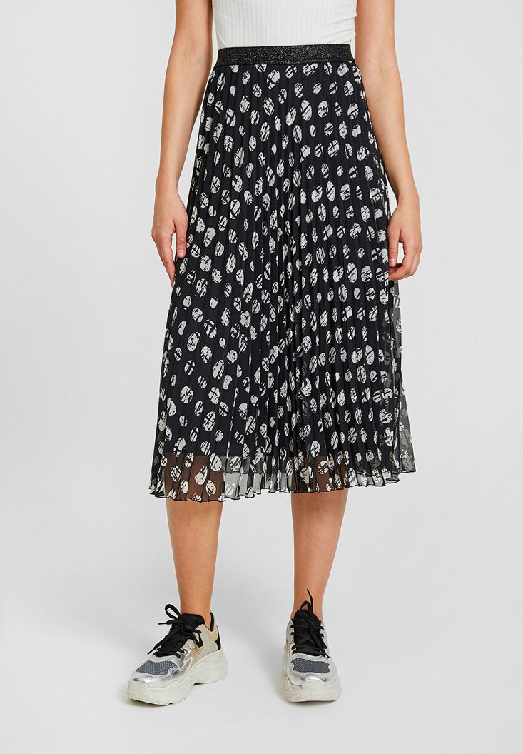 • Bayan Beyaz Puantiye Karışık Desenli Diz Altı Etek