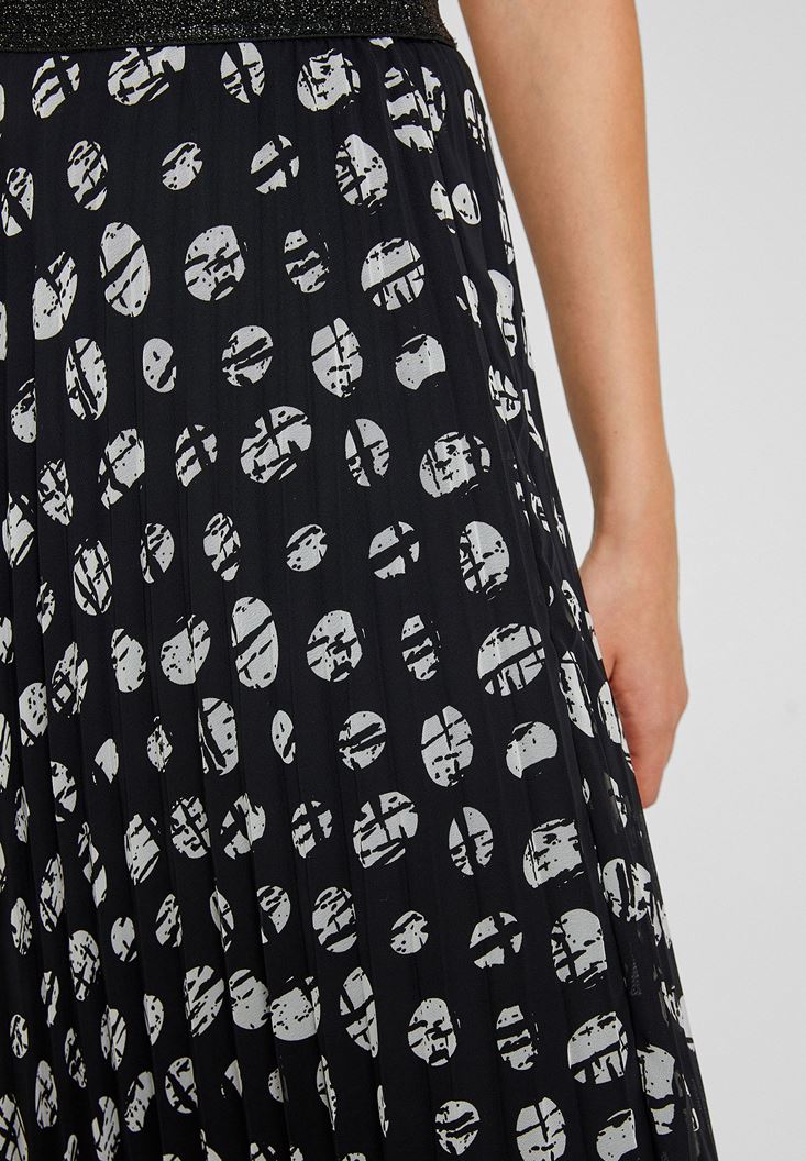 Beyaz Puantiye Karışık Desenli Diz Altı Etek