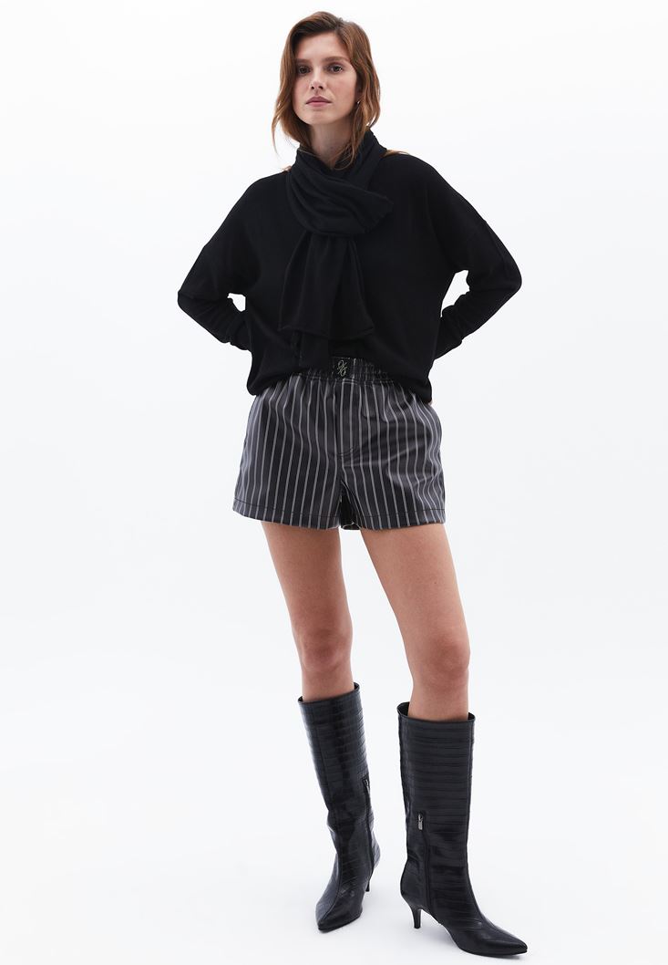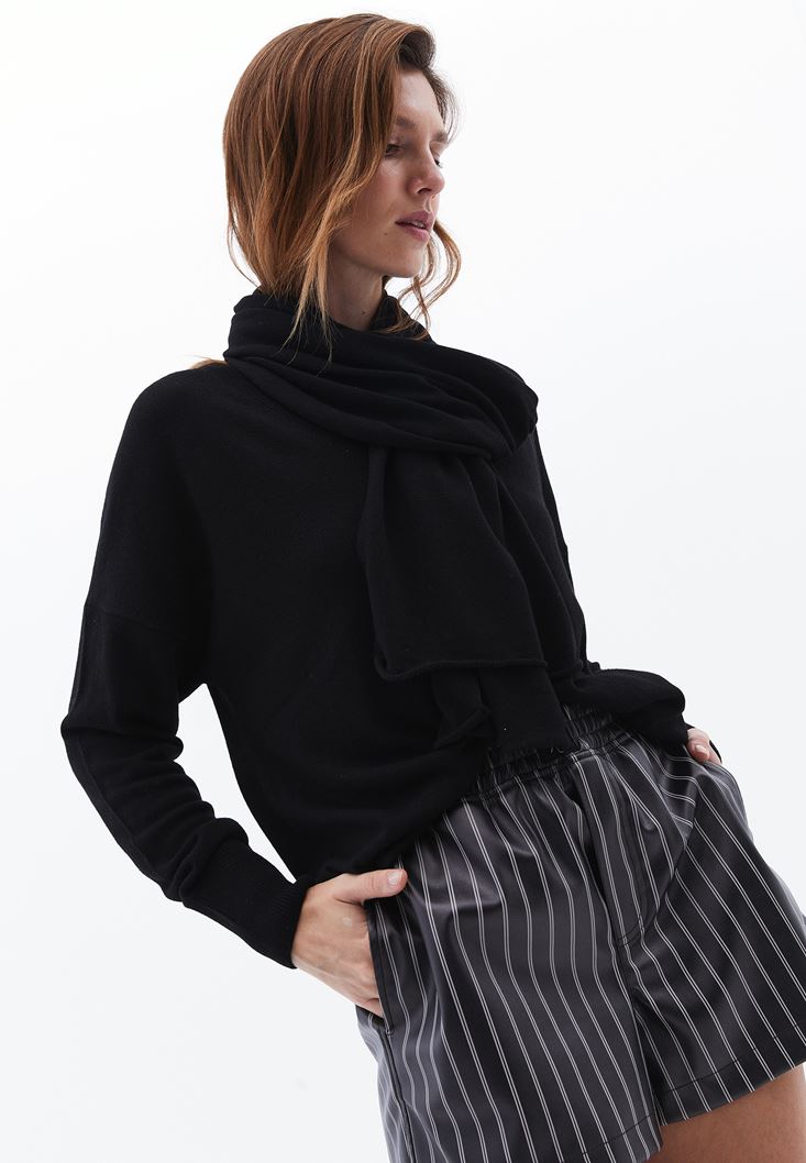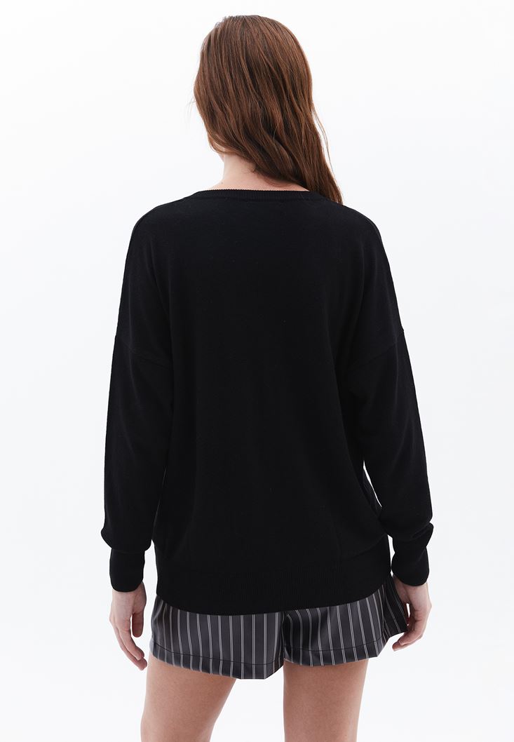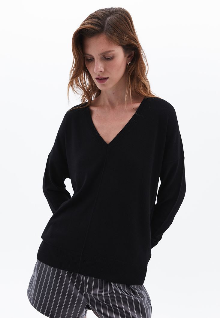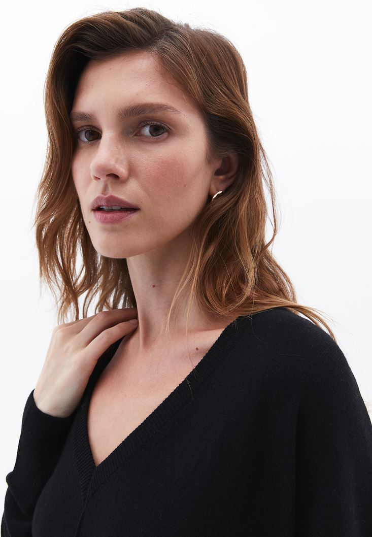 • Bayan Siyah Kaşmir Karışımlı V Yaka Kazak