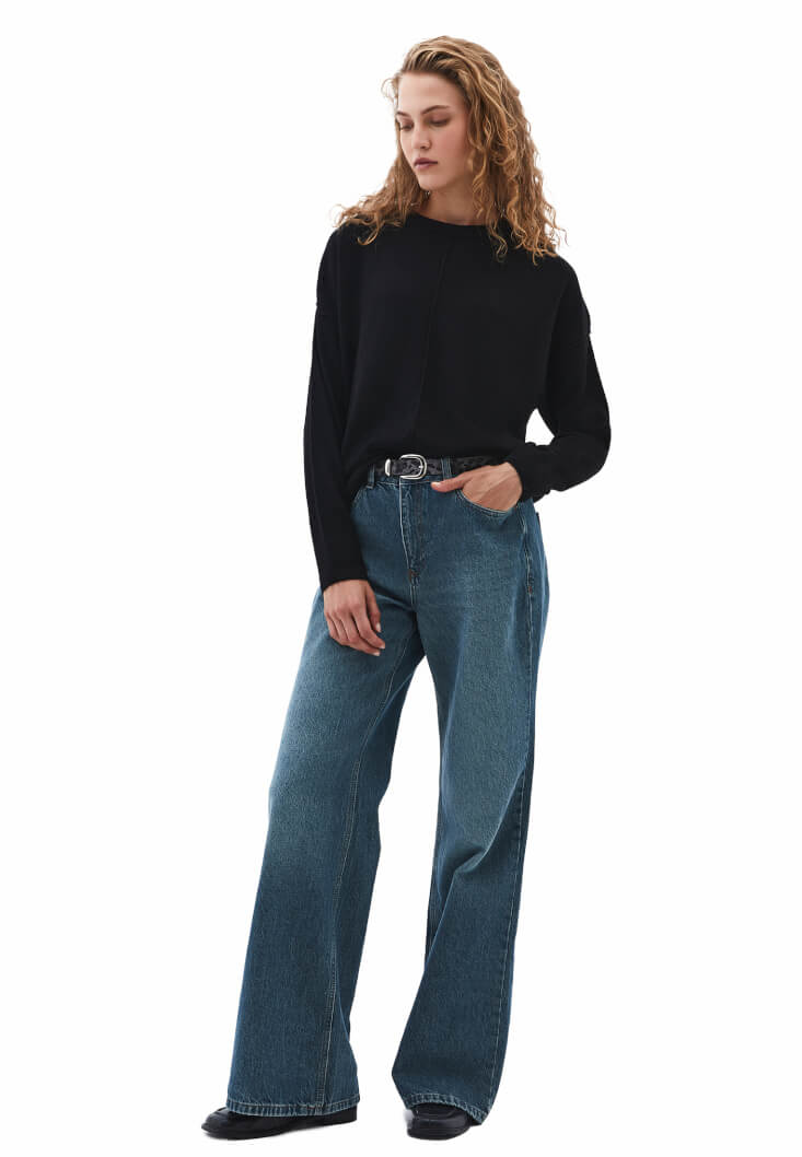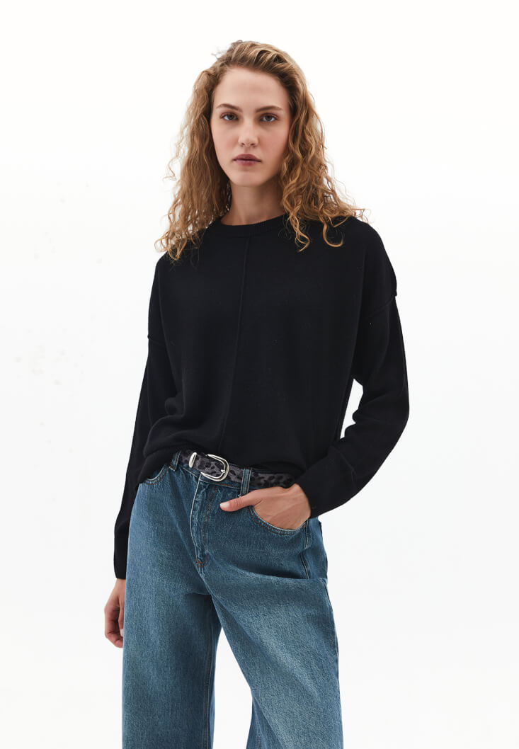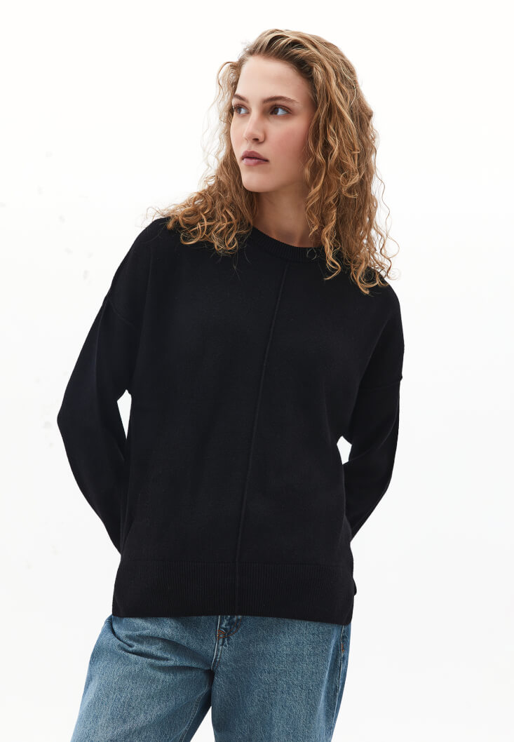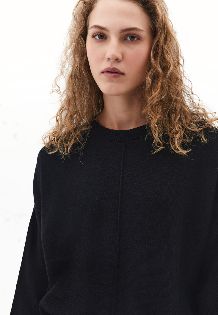 • Bayan Siyah Kaşmir Karışımlı Yün Kazak